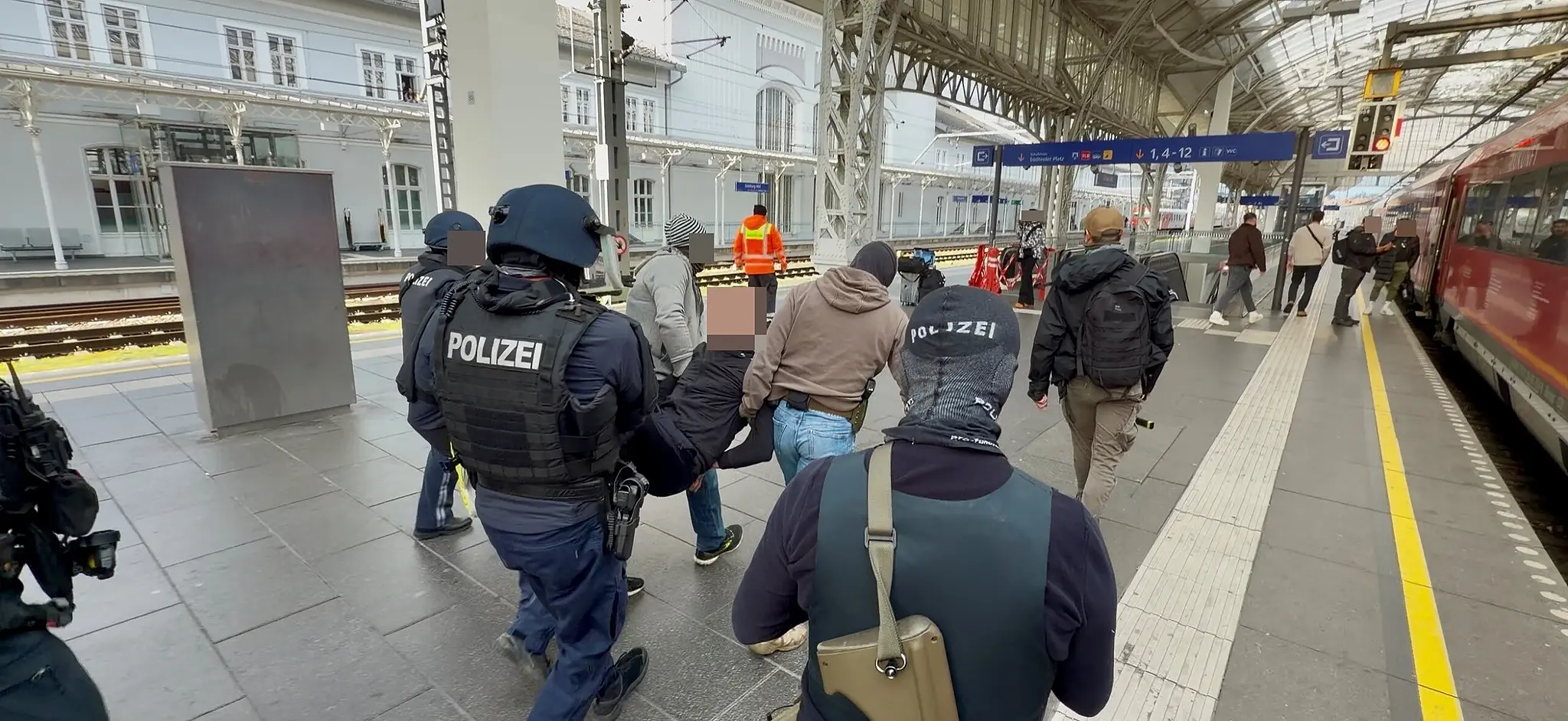 Für Aufsehen sorgte am Montag gegen 13.20 Uhr ein Einsatz der Polizei im Salzburger Hauptbahnhof in der Landeshauptstadt. Schwer bewaffnete Einsatzkräfte haben einen Mann festgenommen, zeigen Bilder vom Bahnsteig. Der Verdächtige dürfte noch im Zug gefasst worden sein. Die Exekutive war augenscheinlich mit mehreren Polizeistreifen und der Schnellen Interventionsgruppe beim Hauptbahnhof im Einsatz.