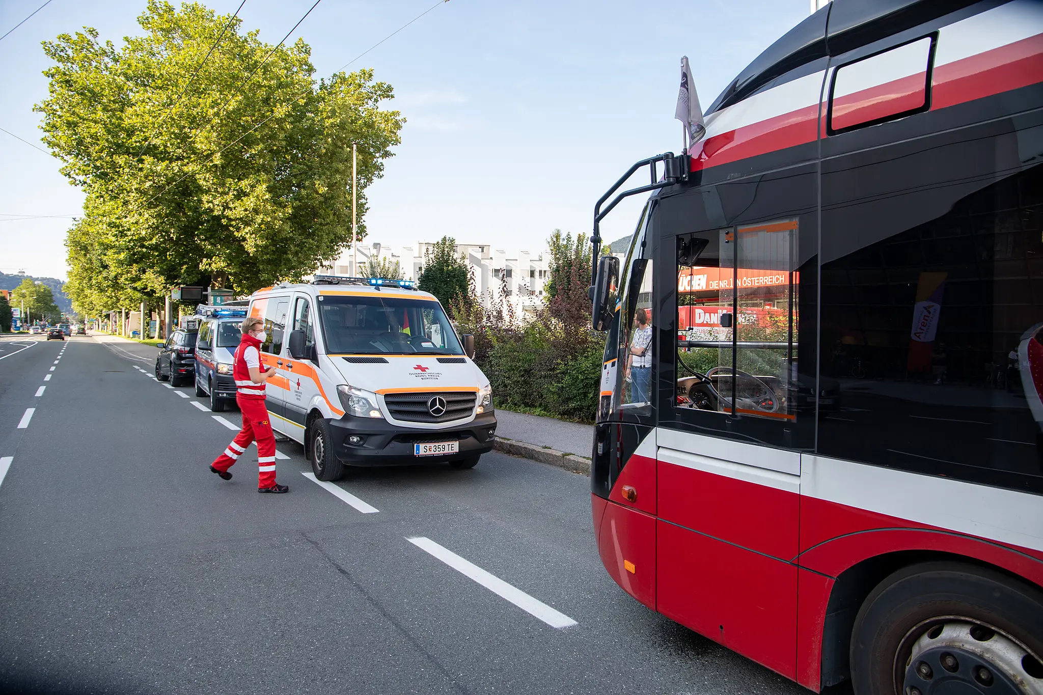 Durch das Bremsmanöver stürzte die 47-Jährige im Bus und erlitt Verletzungen am Kopf und an der linken Hand. Mit der Rettung wurde die Frau ins Spital gebracht.