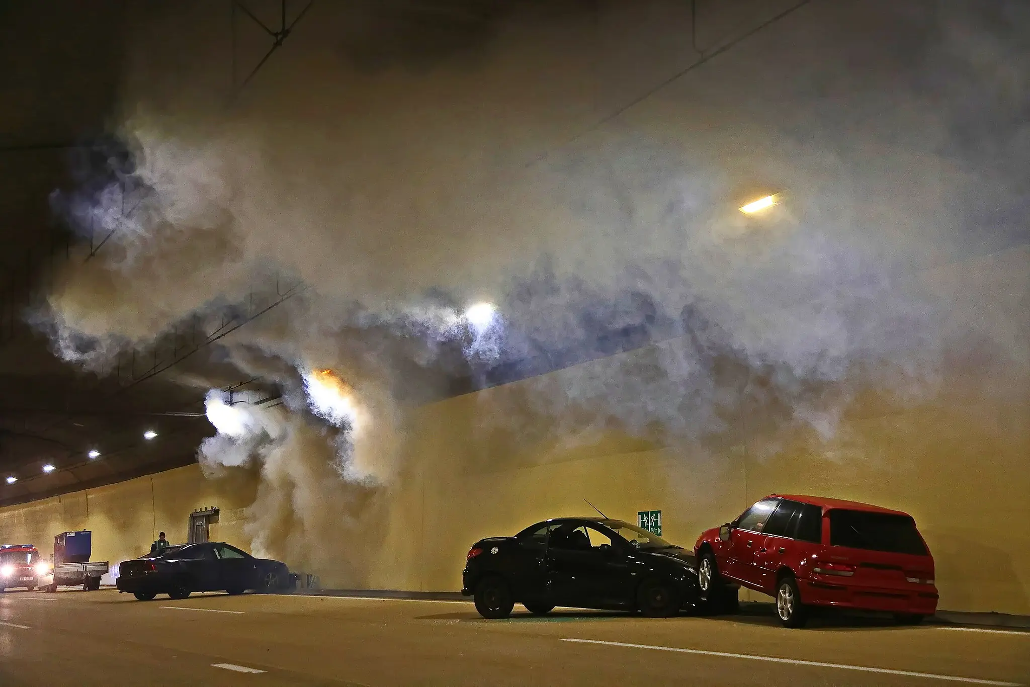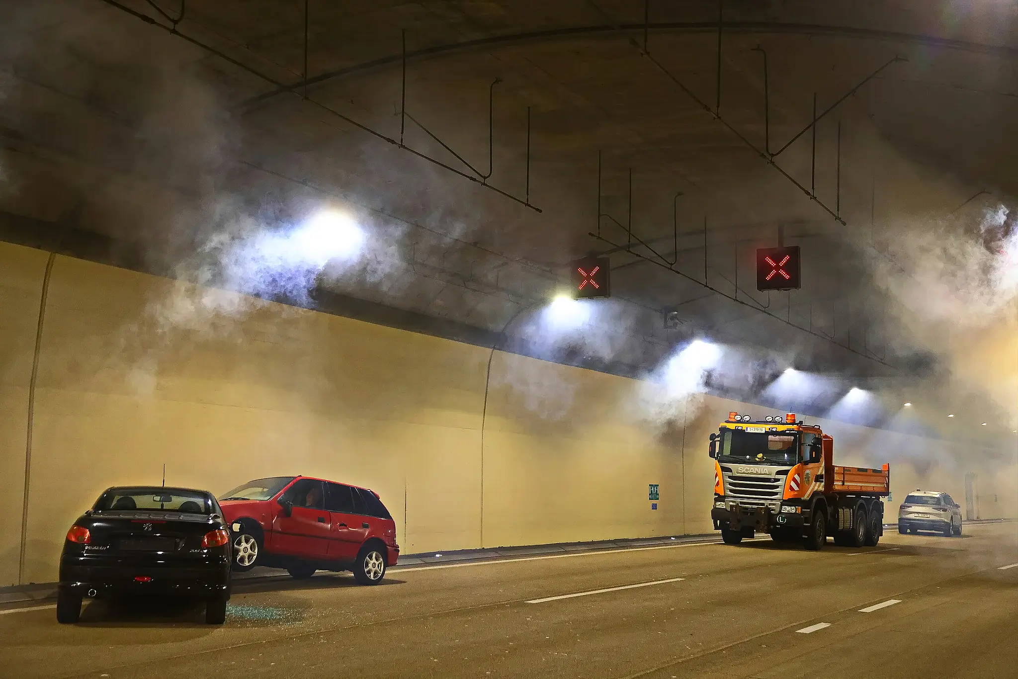 Brandsimulation auf A1 im Lieferinger Tunnel