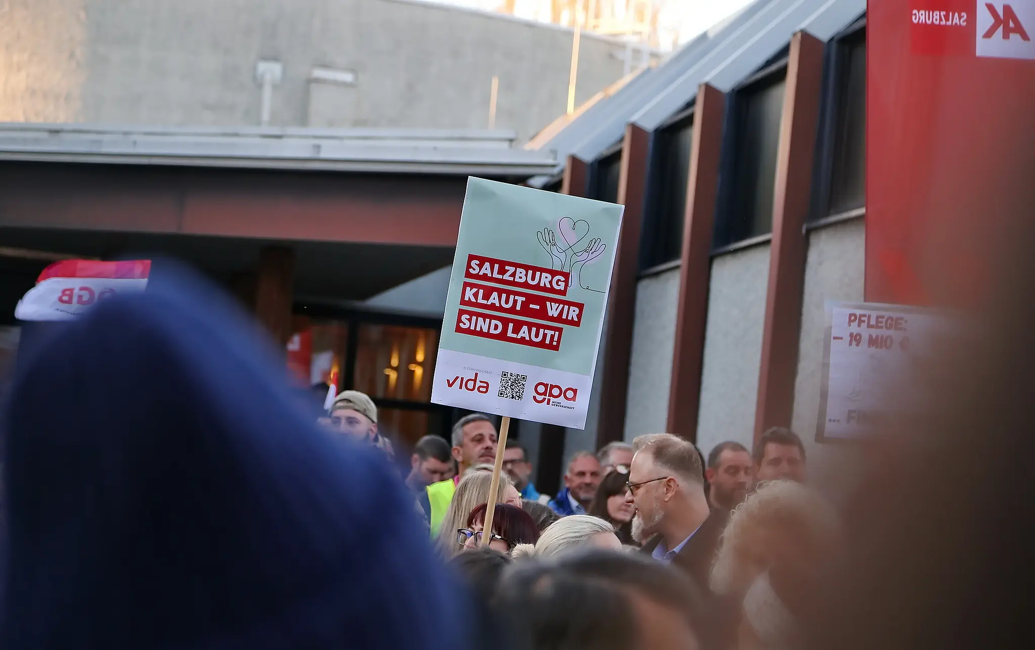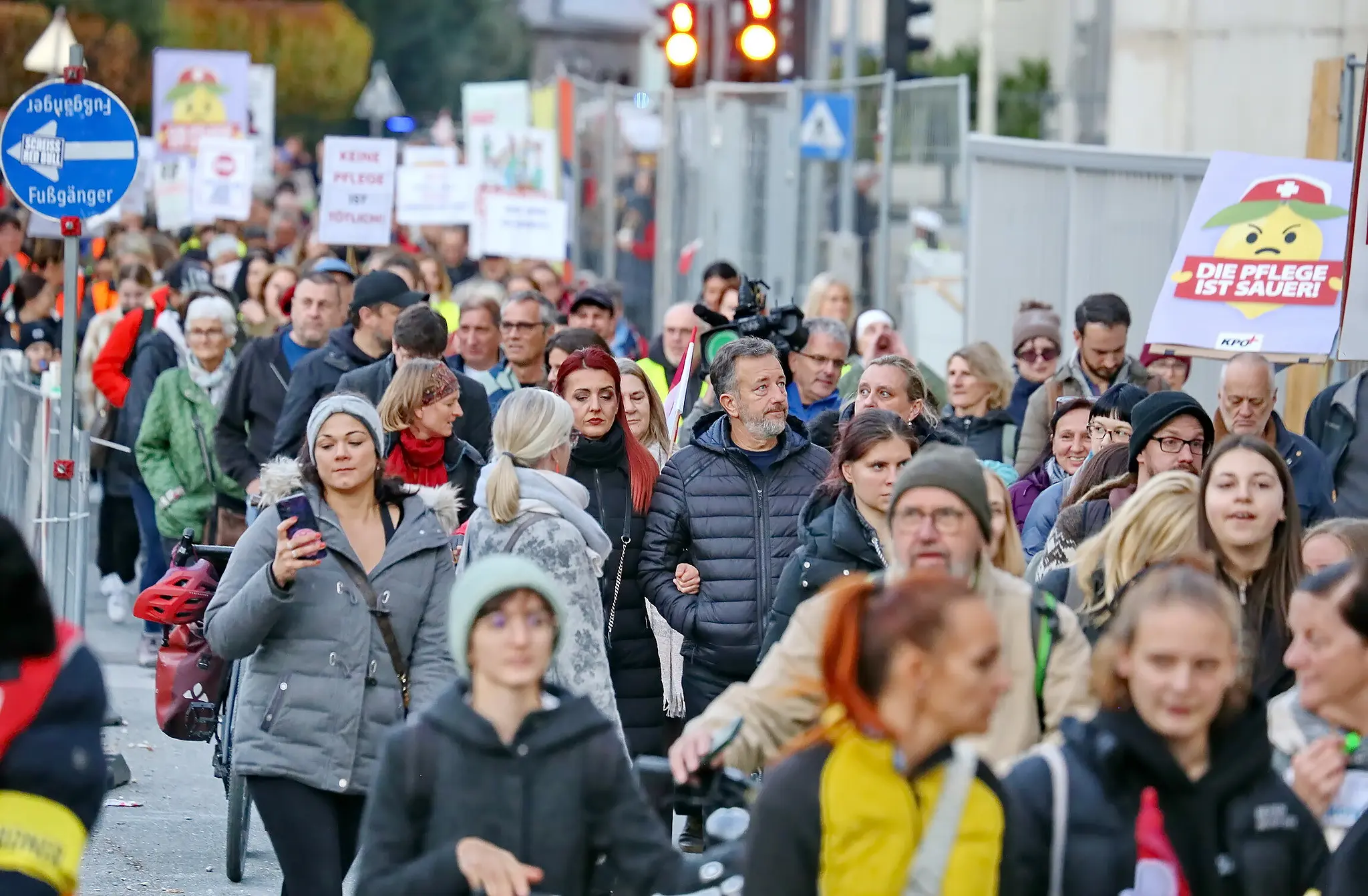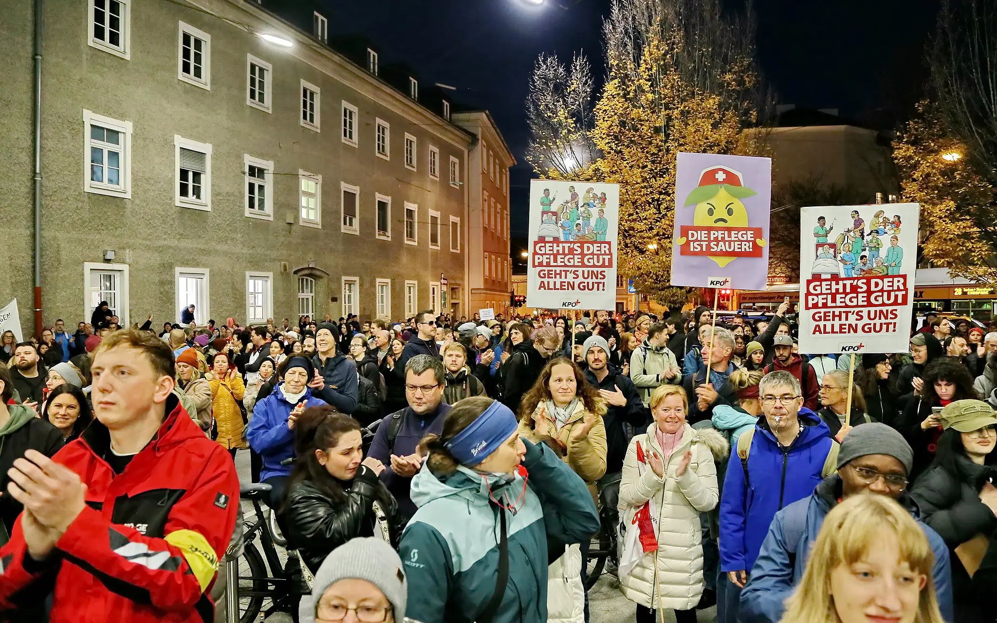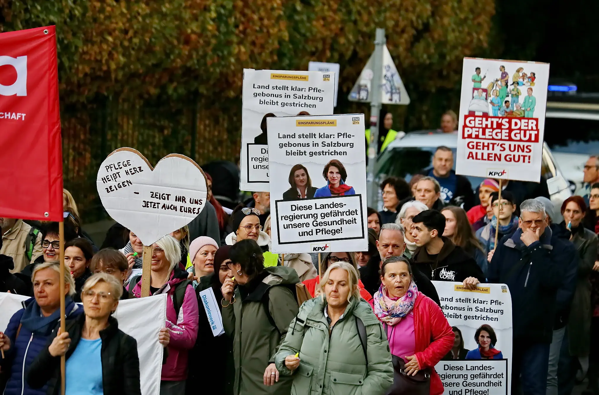 Die Pflegekräfte Salzburgs zeigen sich angesichts der geplanten Einsparungen in ihrem Arbeitsbereich kämpferisch. Am Mittwoch zogen sie gemeinsam mit Angestellten aus den Sozialberufen bei einer Demo durch die Stadt Salzburg. Start war um 16 Uhr beim Parkhotel Brunnauer. Ziel war der Haupteingang der Salzburger Landeskliniken.