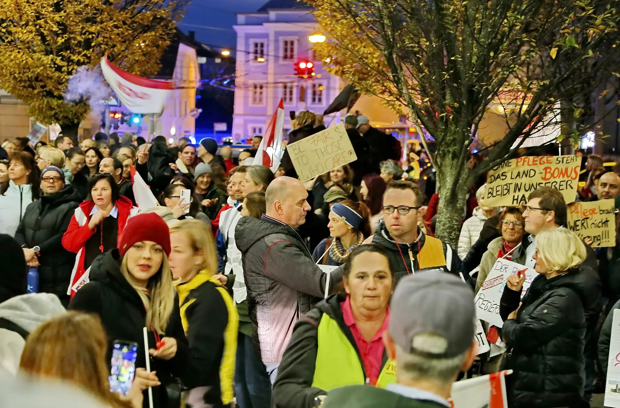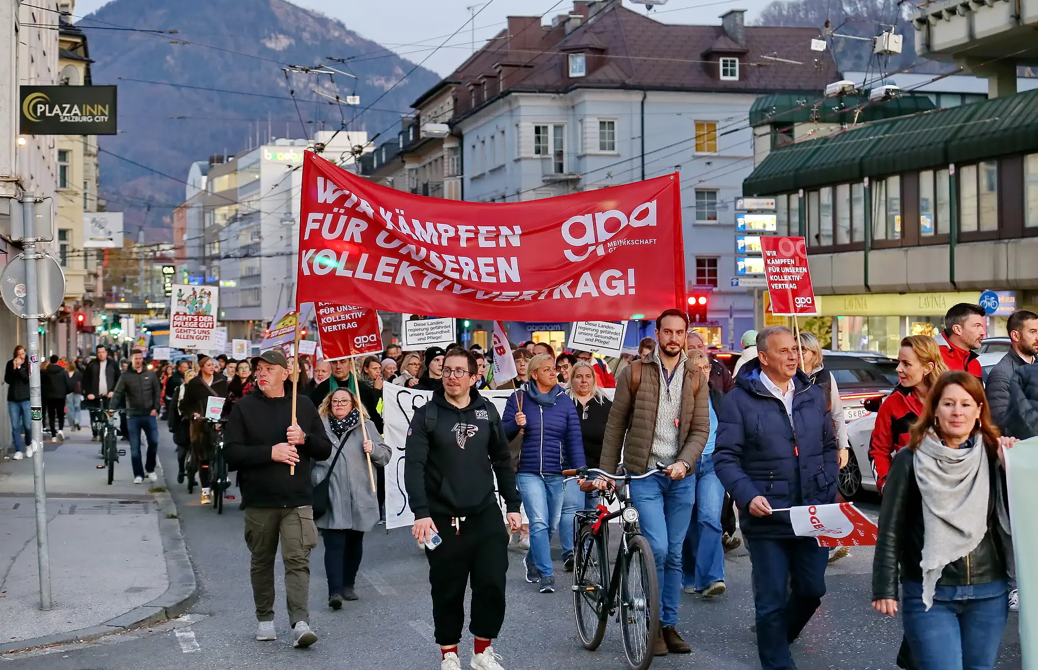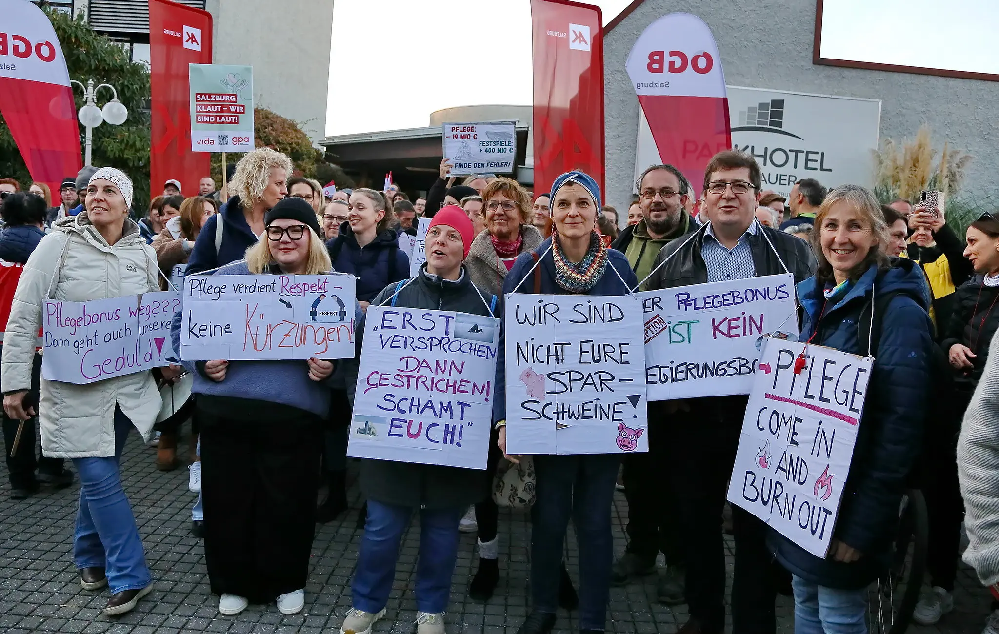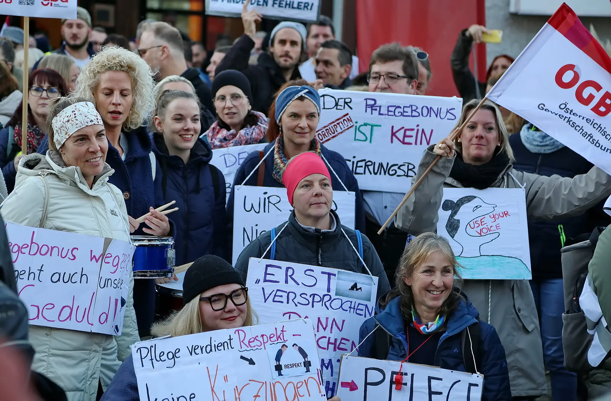Die Pflegekräfte Salzburgs zeigen sich angesichts der geplanten Einsparungen in ihrem Arbeitsbereich kämpferisch. Am Mittwoch zogen sie gemeinsam mit Angestellten aus den Sozialberufen bei einer Demo durch die Stadt Salzburg. Start war um 16 Uhr beim Parkhotel Brunnauer. Ziel war der Haupteingang der Salzburger Landeskliniken.