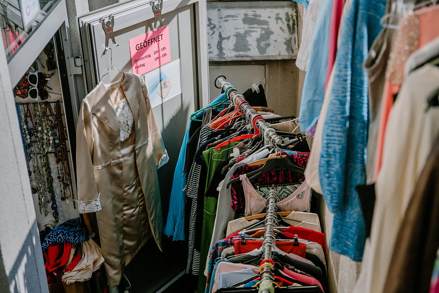 Der SOSA-Shop in der Scherzhauserfeldstraße 10 in der Stadt Salzburg hat donnerstags und freitags jeweils von 10 bis 18 Uhr geöffnet. Auf einer Fläche von rund 56 Quadratmetern gibt es dort Kleidung, Geschirr und verschiedene Dinge des täglichen Bedarfs zu kaufen. Auf dem Preisschild steht ein Minimal-Betrag, denn die Gegenstände sind alle gespendet.