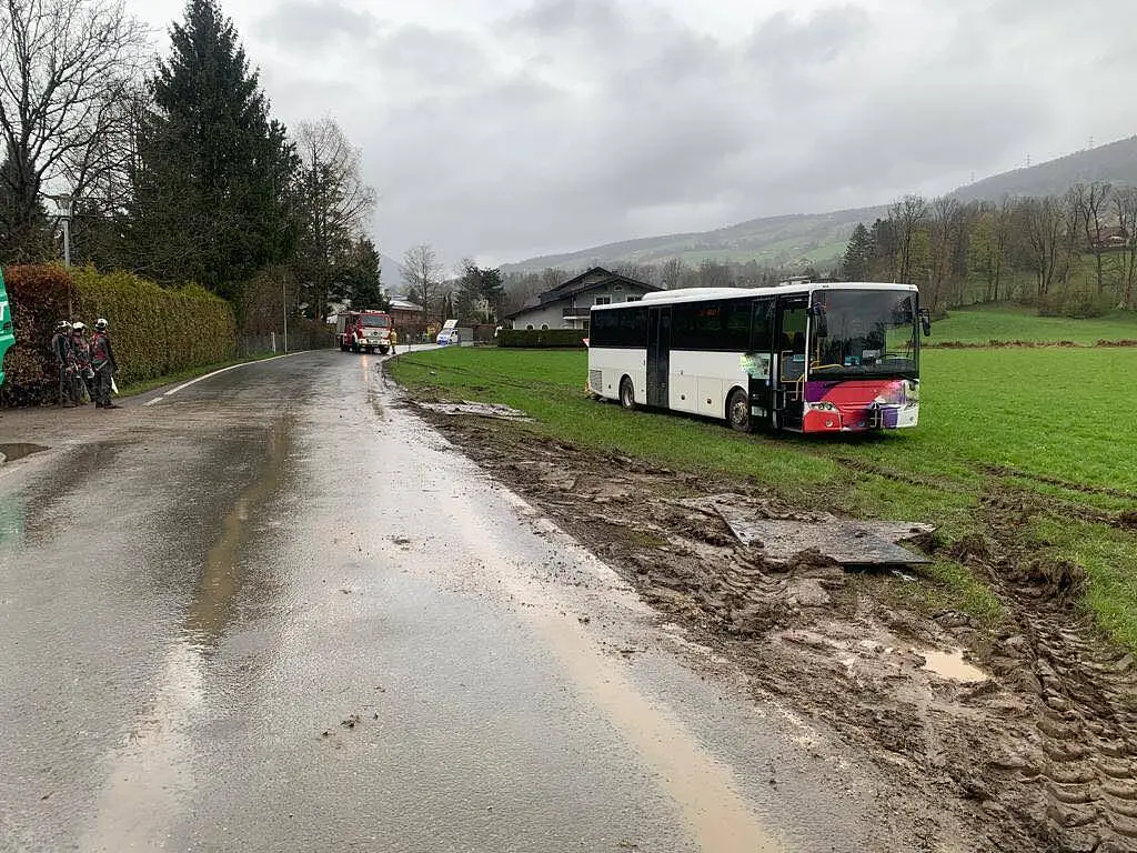 In Adnet (Tennengau) musste die Feuerwehr ausrücken, um einen Bus aus einem nassen Feld zu ziehen. Der Öffi-Lenker wollte einem Lkw ausweichen, der die Straße versperrte.