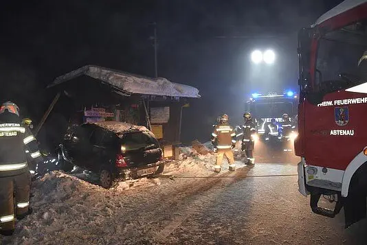 In Abtenau (Tennengau) kam ein Pkw-Lenker Dienstagnachmittag mit seinem Auto ins Schleudern und krachte frontal in ein Bus-Wartehäuschen.