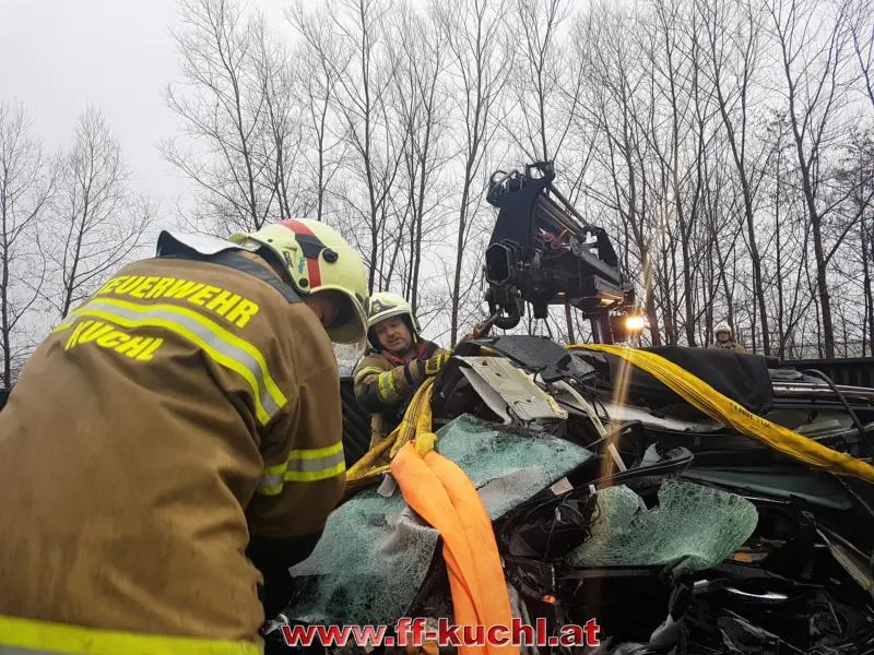 Laut Bericht der Freiwilligen Feuerwehr Kuchl kam das Auto aus noch unbekannter Ursache auf die Gleise. Trotz Notbremsung konnte der Lokführer einen Zusammenstoß nicht mehr vermeiden. Als die Floriani eintrafen, befand sich der Lenker noch im Fahrzeug. Er konnte aus dem völlig demolierten Auto befreit werden, der 70-Jährige erlag aber noch am Unfallort seinen schweren Verletzungen.