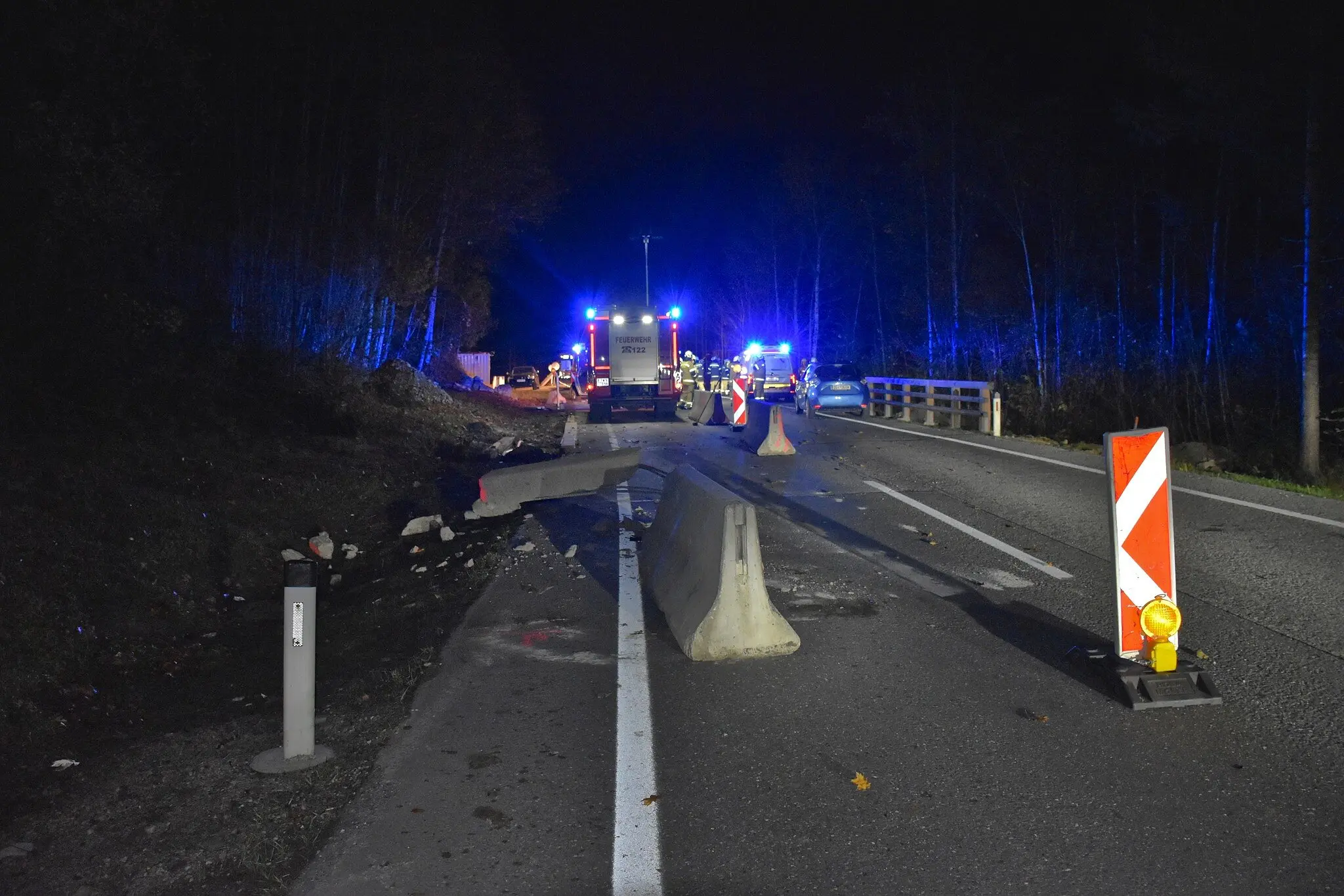 Gegen eine Betonleitschiene gekracht und dann in ein angrenzendes Bachbett geschlittert ist Donnerstagfrüh ein Pkw-Lenker in Abtenau.