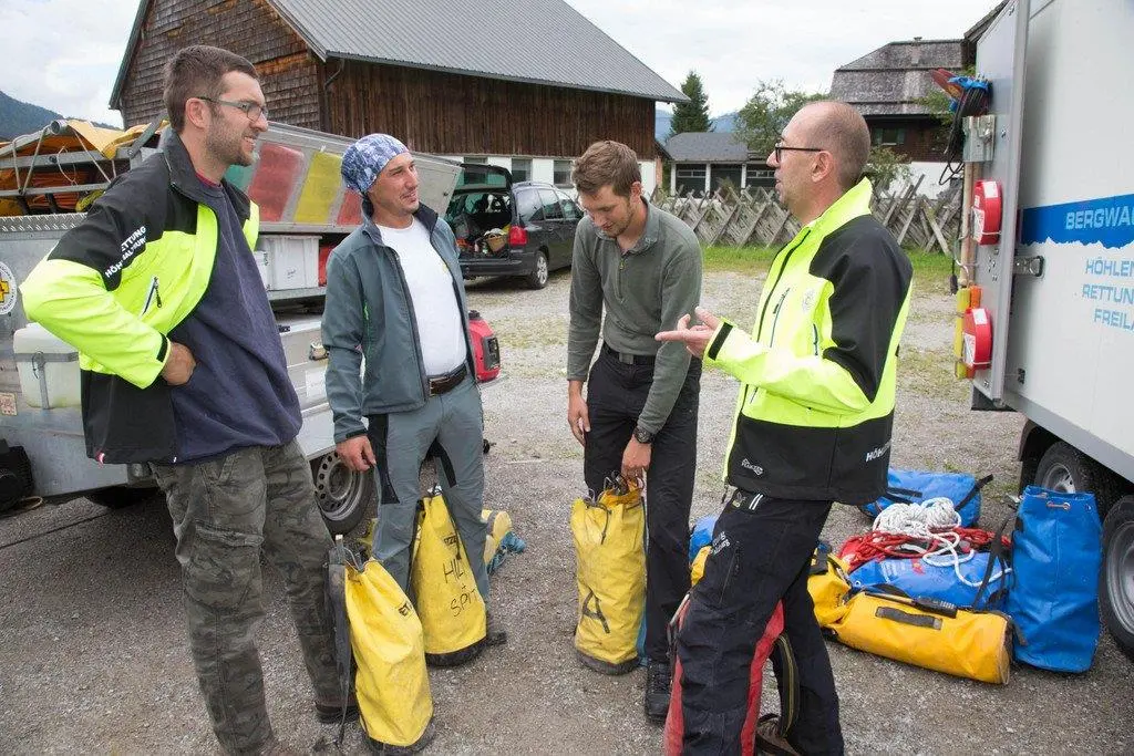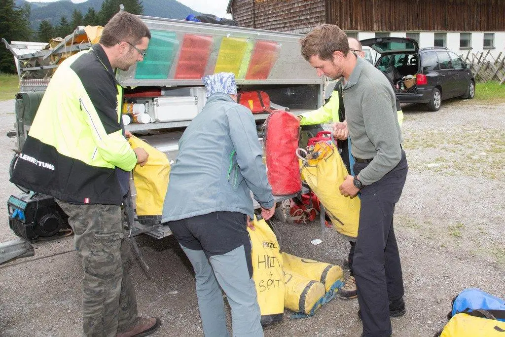 Salzmann schätzt, dass in Summe rund zwei Tonnen Material für den Hilfseinsatz nötig sein werden. Neben den Fixseilen werden weitere Seile benötigt, weiters unter anderem Karabiner, die Trage und Medikamente. Als Stützpunkt dient die Laufener Hütte, die rund eineinhalb Gehstunden vom Höhlenausgang entfernt liegt. Hier können sich die Helfer auch aufwärmen. Beim Einstieg selbst wurde ein kleines Biwak aufgestellt.