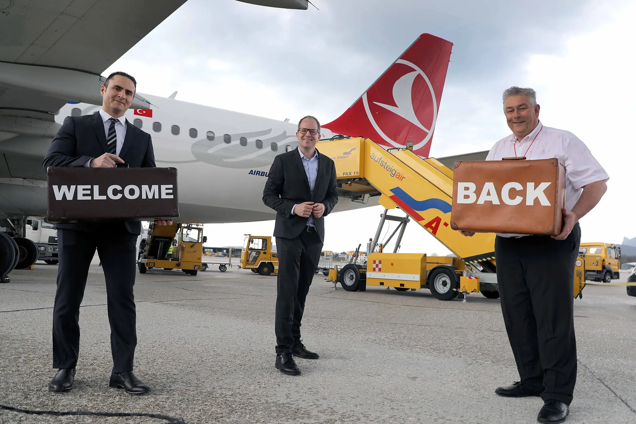 Auch Turkish Airlines musste sich der Pandemie – zumindest in Österreich – geschlagen geben und stellte die Flüge von und nach Salzburg vorübergehend ein. Am Donnerstag konnte in Salzburg wieder der türkische National Carrier begrüßt werden. Auch wenn aktuell überwiegend Geschäftsreisende die Flüge nutzen, so besteht dennoch die Hoffnung auf eine Rückkehr der Privatreisenden im Sommer, sofern die bestehenden Reisebeschränkungen bis dahin gelockert werden können. „Die Auswirkungen dieser Pandemie, die das Reisen nahezu zum Stillstand brachte, sind für den Flugverkehr unberechenbar, täglich muss die Branche mit neuen Verordnungen und Beschränkungen kämpfen. Die erste Landung von Turkish Airlines heute in Salzburg ist ein gutes Zeichen. Nicht zuletzt sind wir damit wieder an den großen HUB Istanbul mit seinen weltweiten Destinationen angebunden,“ freut sich Flughafenprokurist Christopher Losmann, Bereichsleiter Aviation & Sales.