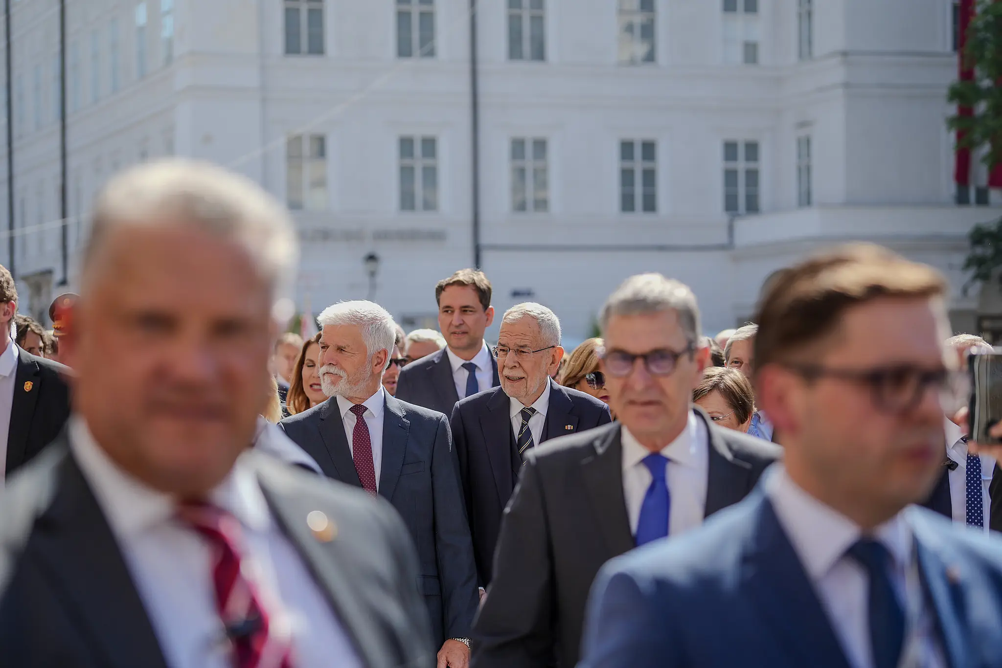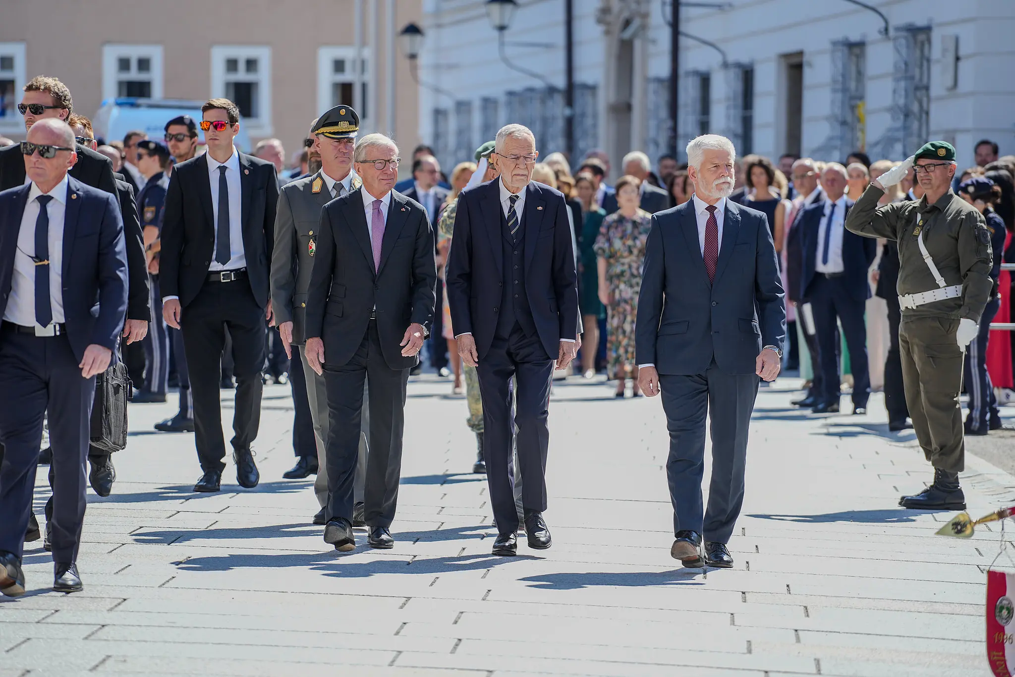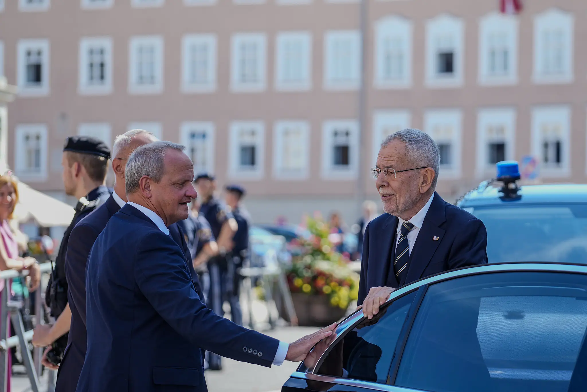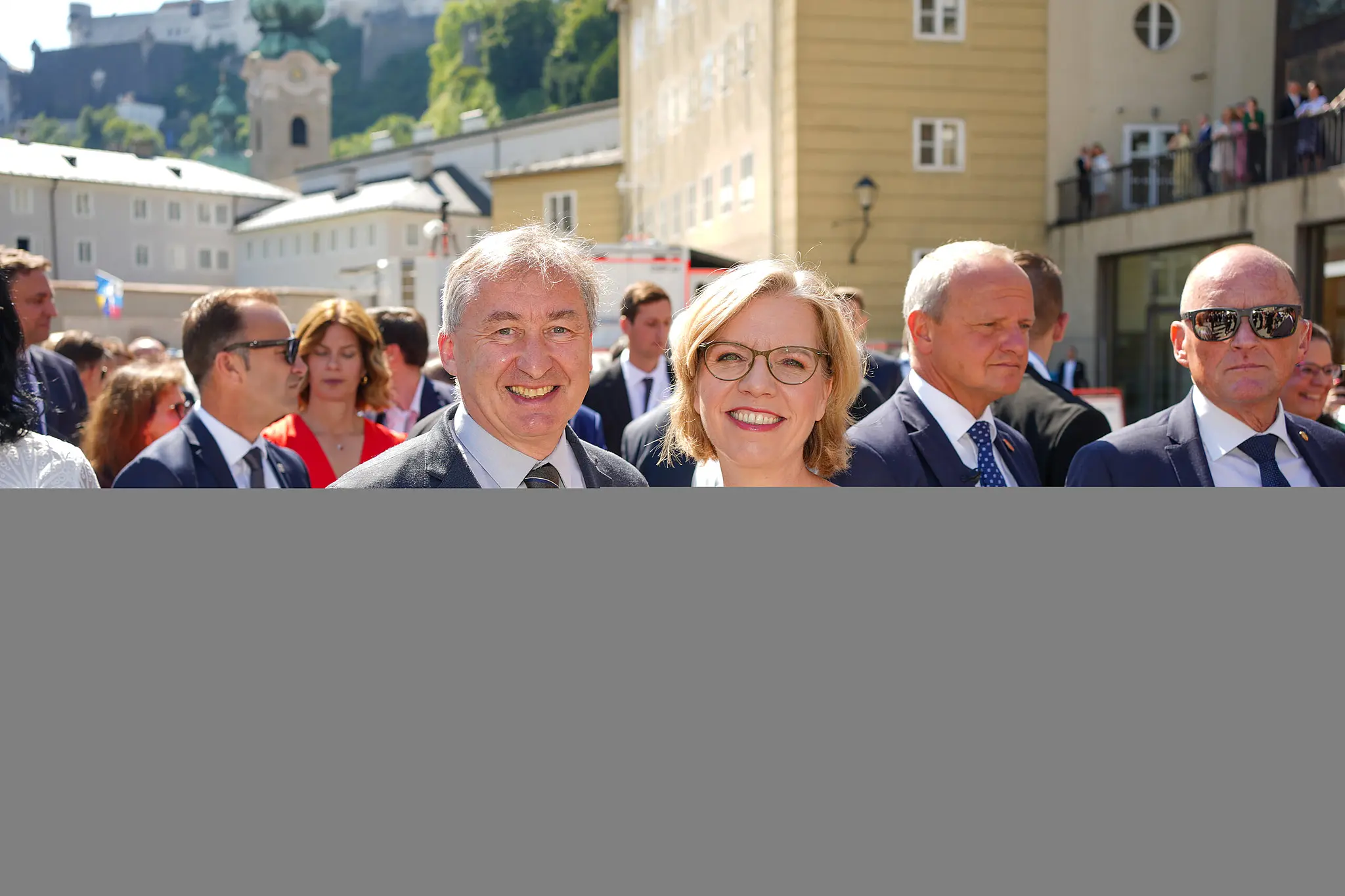 Nach Abschreiten der Ehrenformation des Österreichischen Bundesheers folgte der gemeinsame Gang durch die Altstadt in den Festspielbezirk.