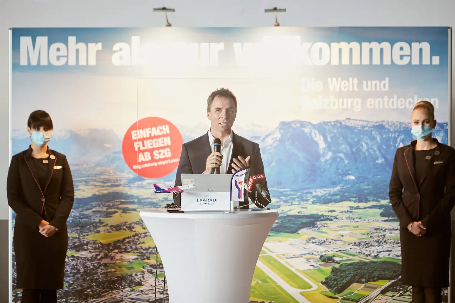 In Zeiten sich langsam lockernder Reisebeschränkungen kündigte die Billigfluglinie Wizz Air neue Flugverbindungen ab Salzburg an. "Wir werden ab 1. Juli mit sechs Destinationen starten", kündigte Jozsef Varadi, CEO der Wizz Air Group, bei einem Pressegespräch in Salzburg an.
