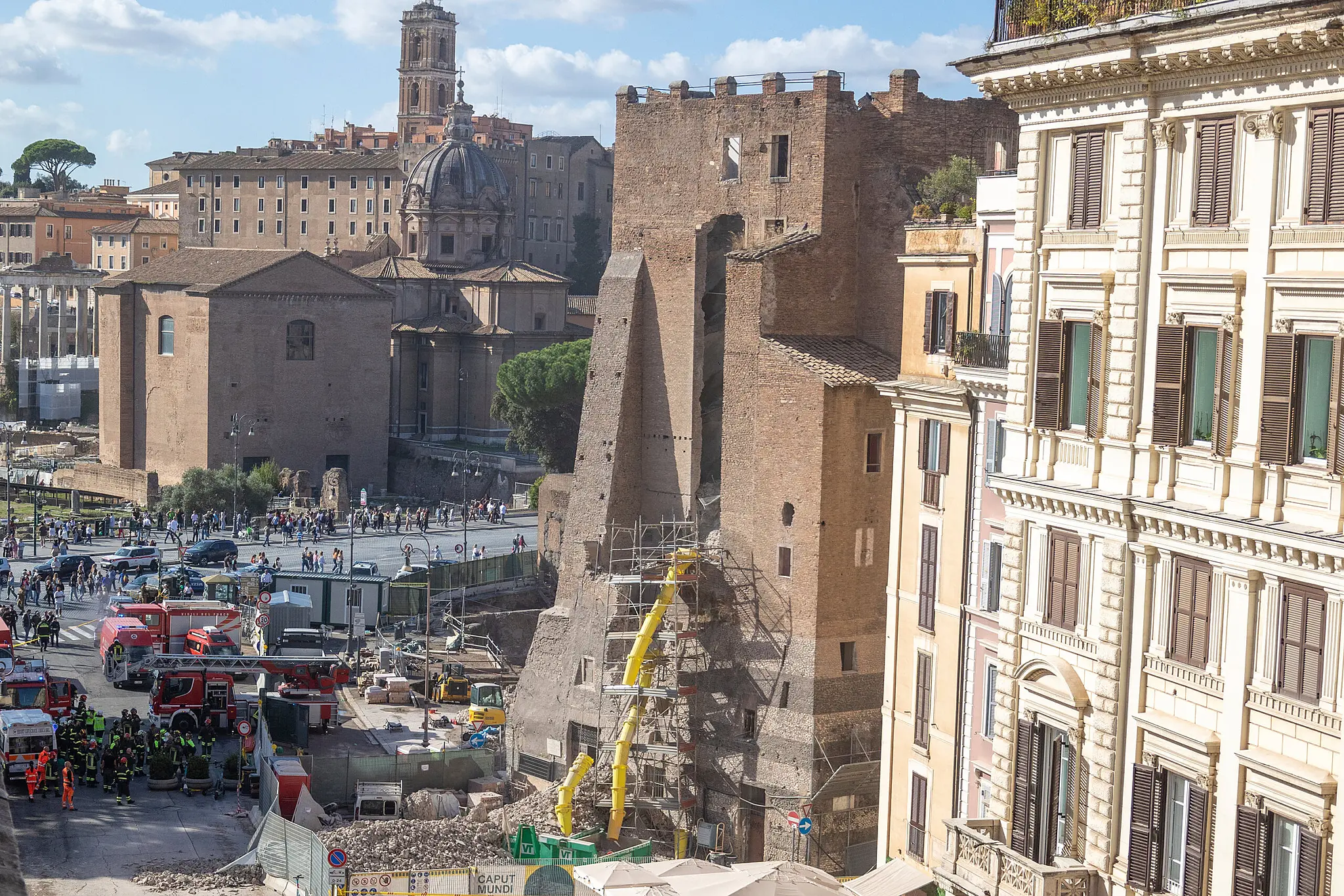 Die Polizei sperrte die Zone ab, die von Touristen stark frequentiert ist. Auch für Fußgänger und Fahrzeuge war kein Durchkommen. Die Rettungsarbeiten und der Einsatz der Notfallfahrzeuge sollten so erleichtert werden. Die Behörden warnten vor weiteren Einstürzen. Am Unglücksort trafen der Bürgermeister von Rom, Roberto Gualtieri, der Kulturminister Alessandro Giuli sowie die Leitung der städtischen Denkmalbehörde ein. Der Turm diente ursprünglich als Residenz der Adelsfamilien und kirchlichen Behörden. 1203 ließ Papst Innozenz III. den Turm für seine Familie, die Grafen von Segni, erweitern. Fassadenplatten aus Travertin, die von den Fori Imperiali stammten, wurden angebracht.