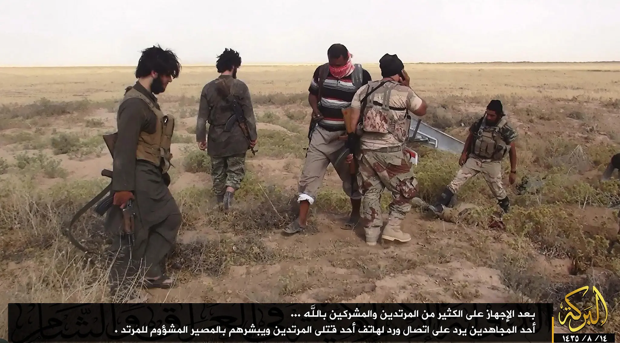 - 15. Juni: Nachdem irakische Armee und kurdische Peshmerga-Kämpfer den Vormarsch der Jihadisten gebietsweise stoppen konnten, führt IS den Kampf mit Videos und Fotos grausamer Exekutionen auch im Internet.