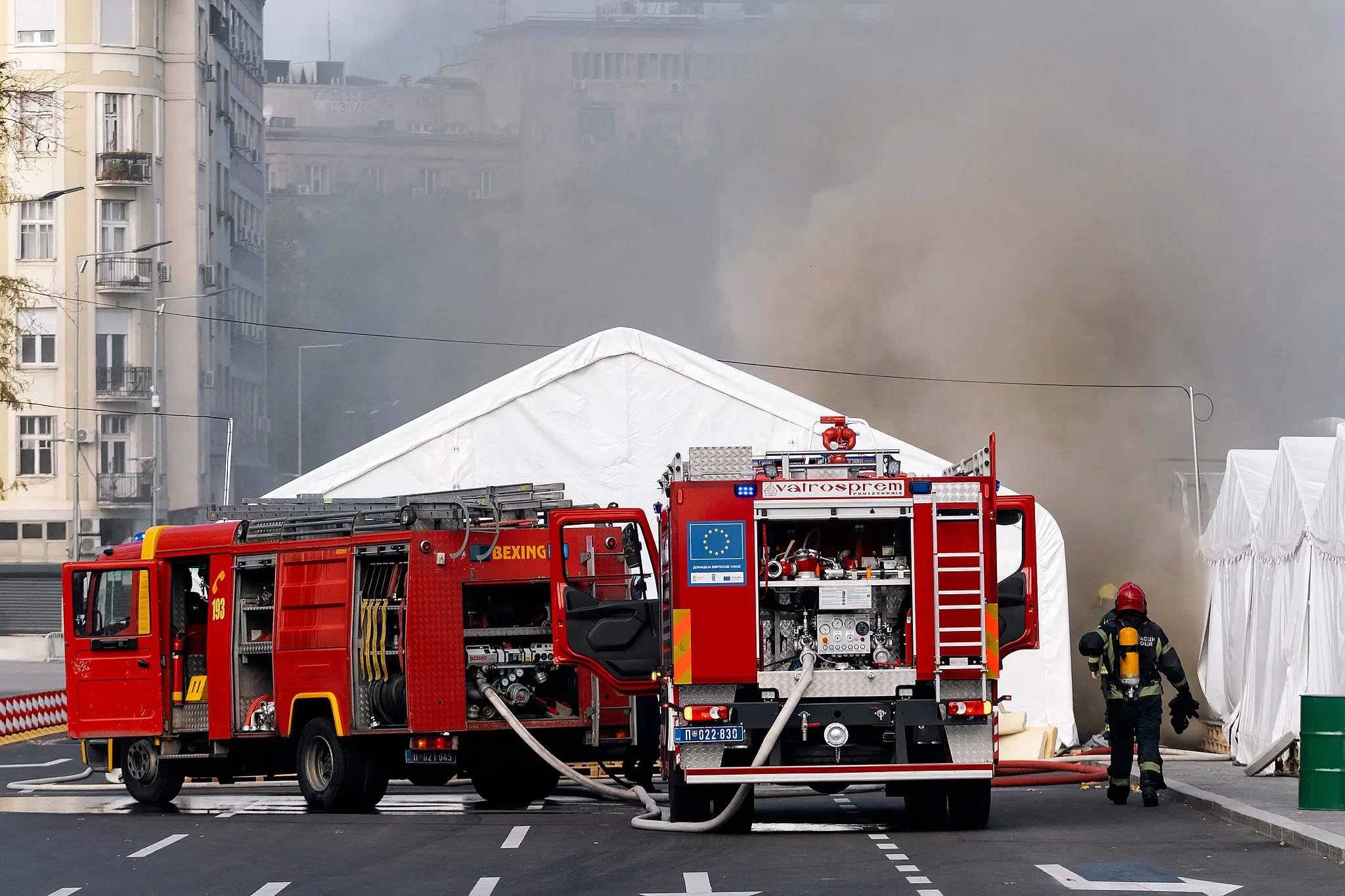 Feuer in Zeltlager in Belgrad