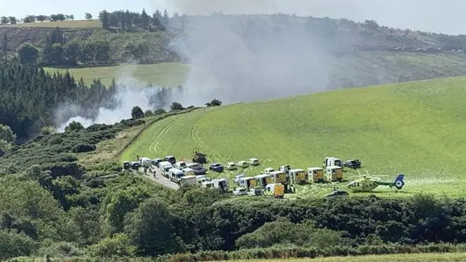 Die Polizei war nach eigenen Angaben um 9.43 Uhr (Ortszeit; 10.43 Uhr MESZ) zu der Unglücksstelle nahe der südlich von Aberdeen gelegenen Stadt Stonehaven gerufen worden. Demnach waren rund 30 Rettungsfahrzeuge vor Ort. Auf im Fernsehen veröffentlichten Videoaufnahmen von der Unglücksstelle war aufsteigender Rauch zu sehen.