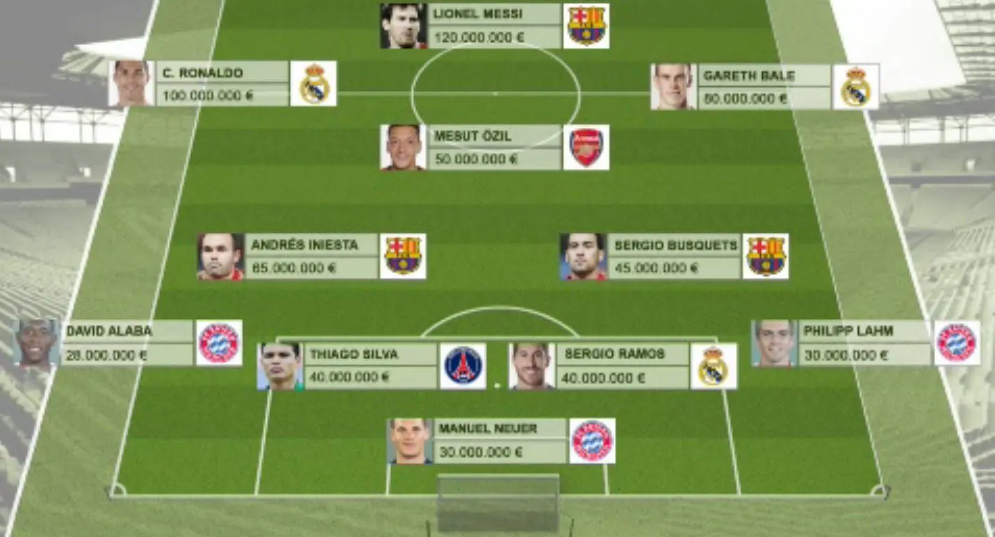 Je drei Spieler von Bayern München, Real Madrid und Barcelona sowie einer von Arsenal und einer von Paris St. Germain haben es in die fiktive Fußball-Elf geschafft. Mit dabei ist auch ein Österreicher, natürlich David Alaba. Er ist der derzeit "wertvollste" Linksverteidiger der Welt. Übrigens: Von der schwedischen Nationalmannschaft, unser nächster Gegner in der WM-Quali, hat es keiner in das Luxus-Team geschafft.