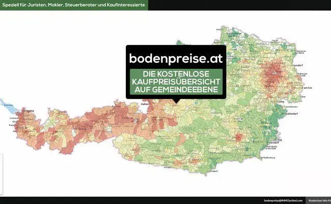 Bei den angegebenen Preisen handelt es sich um einen Richtwert, der sich aus dem mittleren Kaufpreis der im Grundbuch durchgeführten Transaktionen ergibt. Es handelt sich also um einen Median, der zeigt, welcher Quadratmeterpreis im Mittel erzielt wird. Bodenpreise.at ist ein Dienst von IMMOunited und am Montag letzte Woche online gegangen.