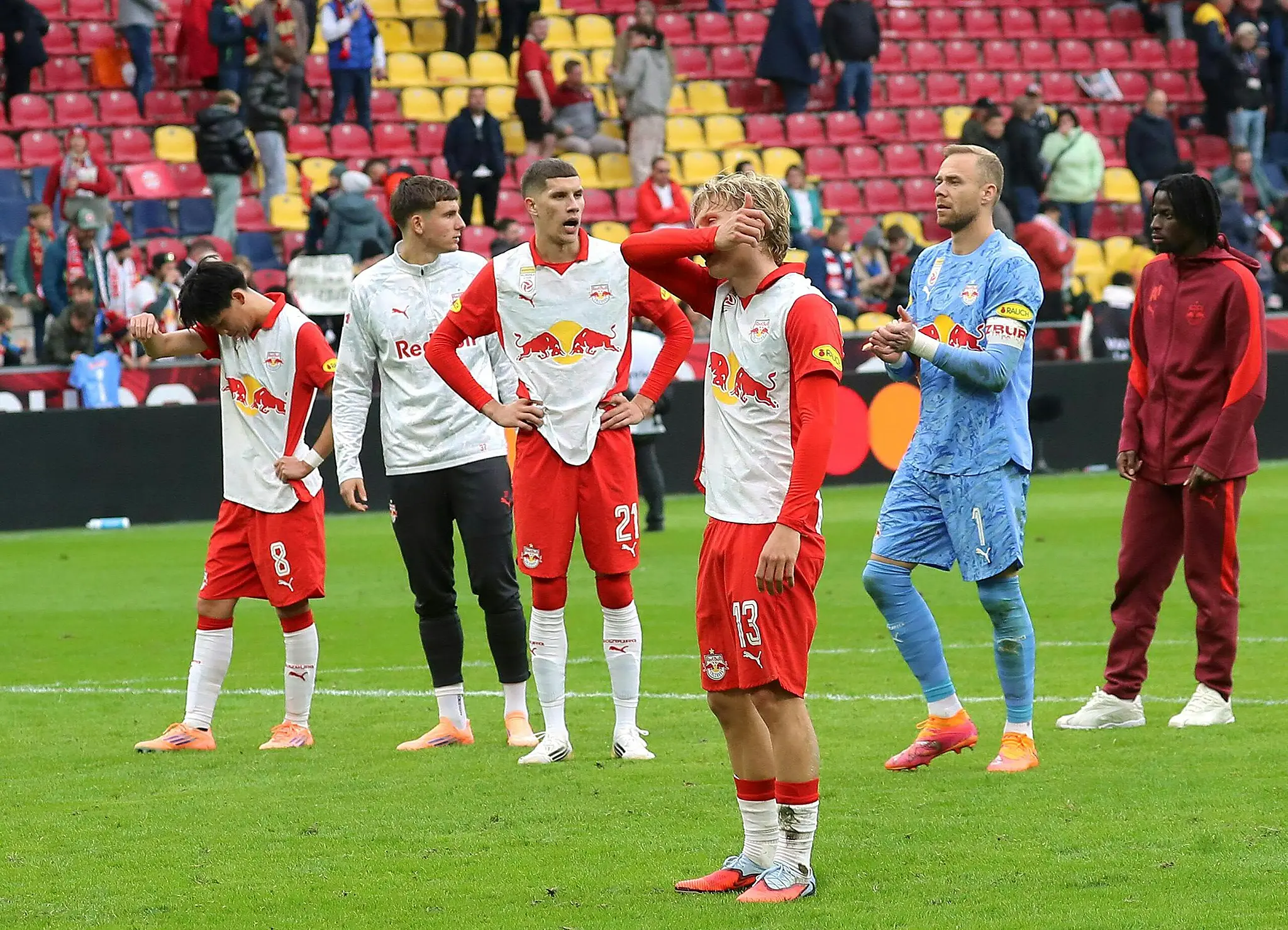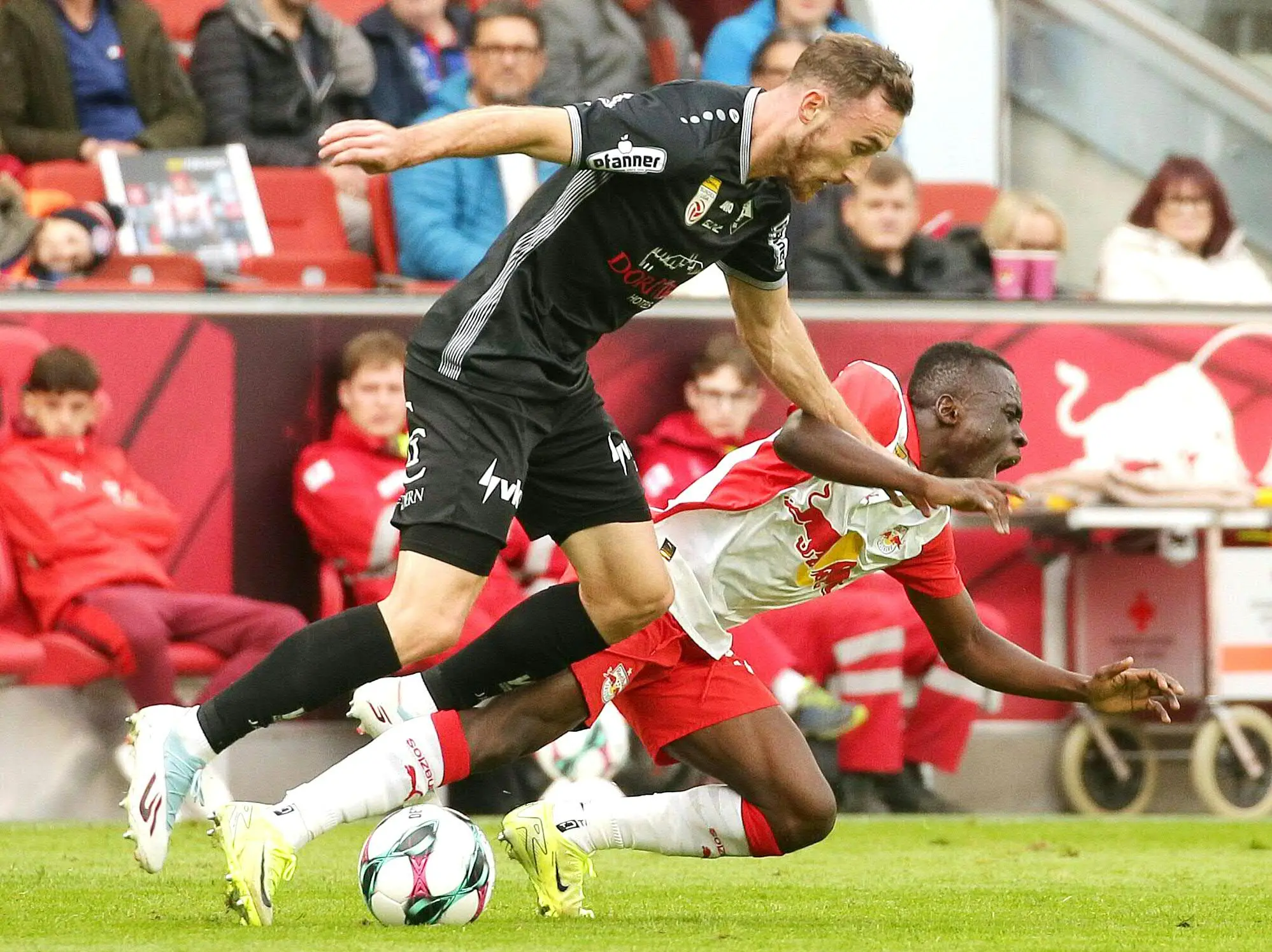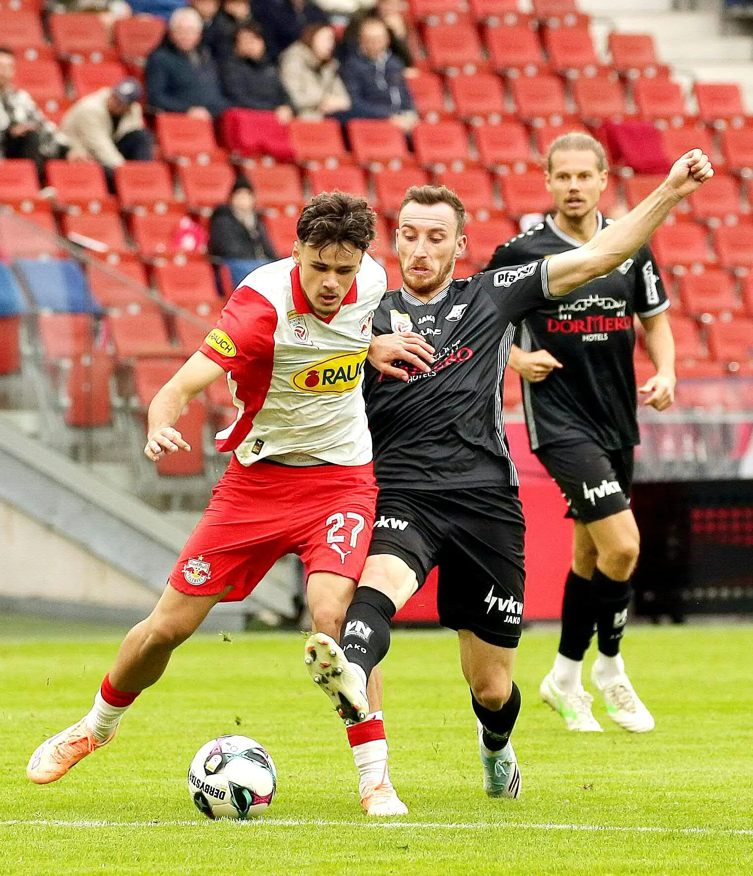 Aber alles der Reihe nach, beginnend mit dem sportlichen 2:2-Remis der zehnten Runde. Ab der 22. Minute in Unterzahl verwandelten die Bullen dank Kerim Alajbegovic (41.) und Edmund Baidoo (56.) einen 0:1-Rückstand nach Elfer von Patrick Greil (34.) in eine 2:1-Führung, die Ousmane Diawara (80.) noch egalisierte. Salzburgs Rückstand auf Leader Sturm Graz wuchs auf drei Punkte an, die Altacher schrieben nach zwei Niederlagen wieder an und sind Siebenter.