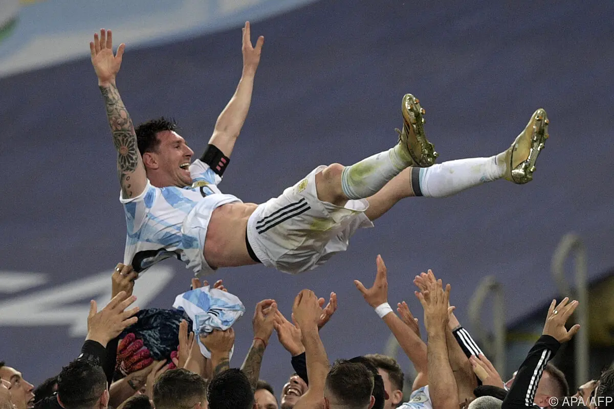 Nach dem Abpfiff umarmte der Weltklassestürmer zahlreiche Teamkollegen und Trainer Lionel Scaloni. Später hoben seine Mitspieler Messi auf die Schultern und ließen ihn hochleben. Die Spieler feierten vor der Zuschauertribüne der wenigen argentinischen Fans ihren Sieg, ein sichtlich gelöster Messi warf Handküsse ins Publikum. "Das ist ein sehr großer Titel. Ich hoffe, die Argentinier können das genießen. Die Fans lieben die Mannschaft bedingungslos", sagte Scaloni.