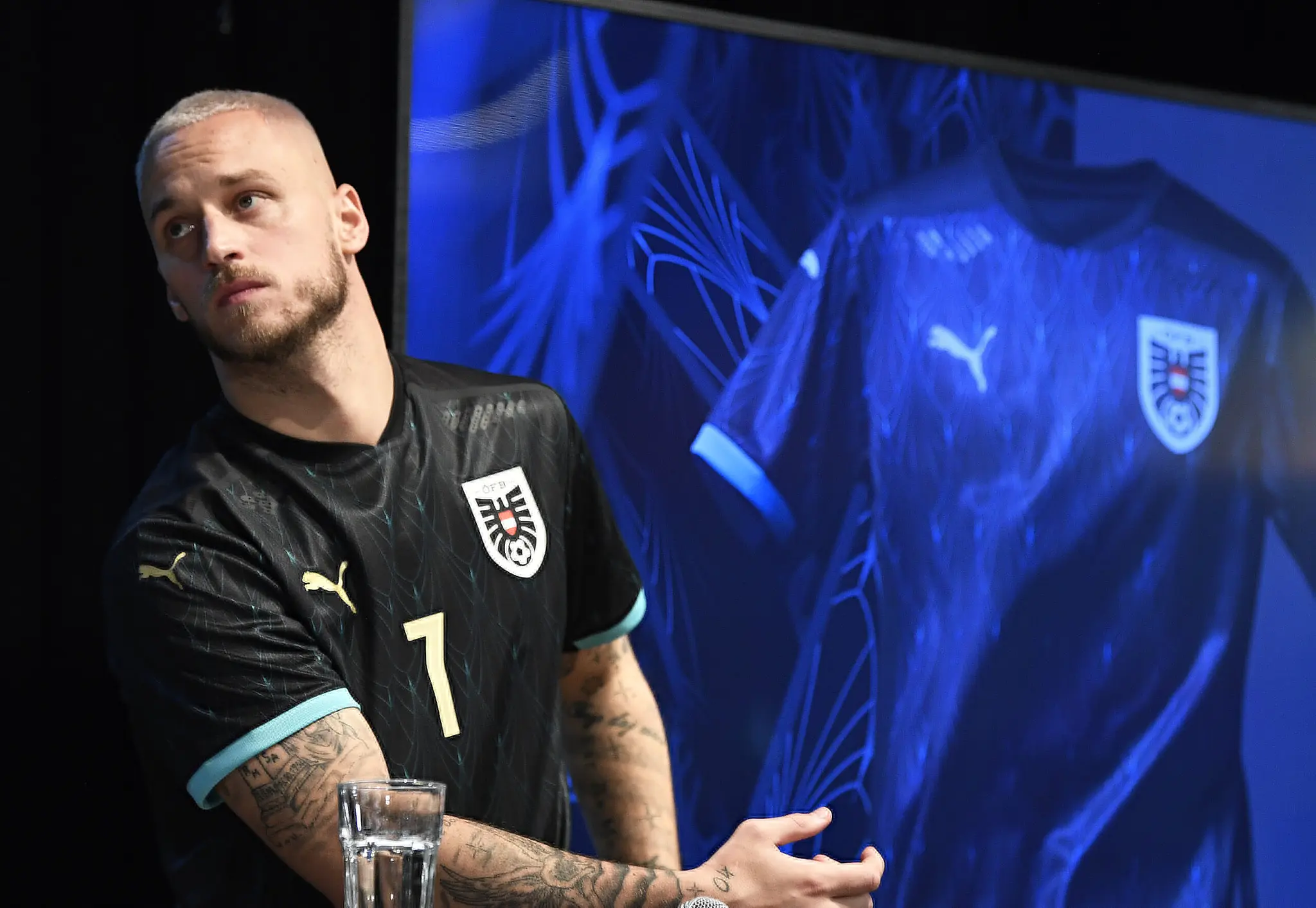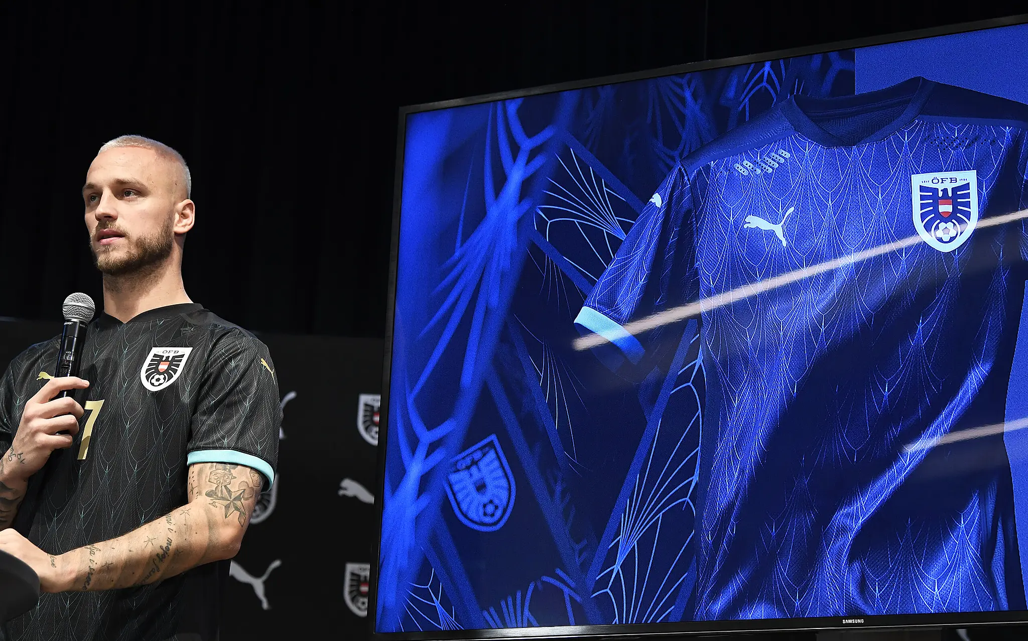 Präsentiert wurde das Trikot von Marko Arnautovic, der die Bühne mit den Worten "I woa scho immer a schena Bua" betrat. Danach meinte der ÖFB-Star: "Mir gefällt es sehr gut, es hilft uns aber nicht weiter beim Spielen. Wir schauen sehr schön aus, aber wir müssen auch sehr gut Fußball spielen." Anlässlich der Trikotpräsentation wurde auch die Vertragsverlängerung zwischen dem ÖFB und Puma bekanntgegeben. Der Sportartikelhersteller steigt damit zu einem der vier Premiumpartner des Verbandes auf, über die Laufzeit des Kontraktes wurden keine Angaben gemacht. Puma ist seit 45 Jahren Ausrüster des Nationalteams.