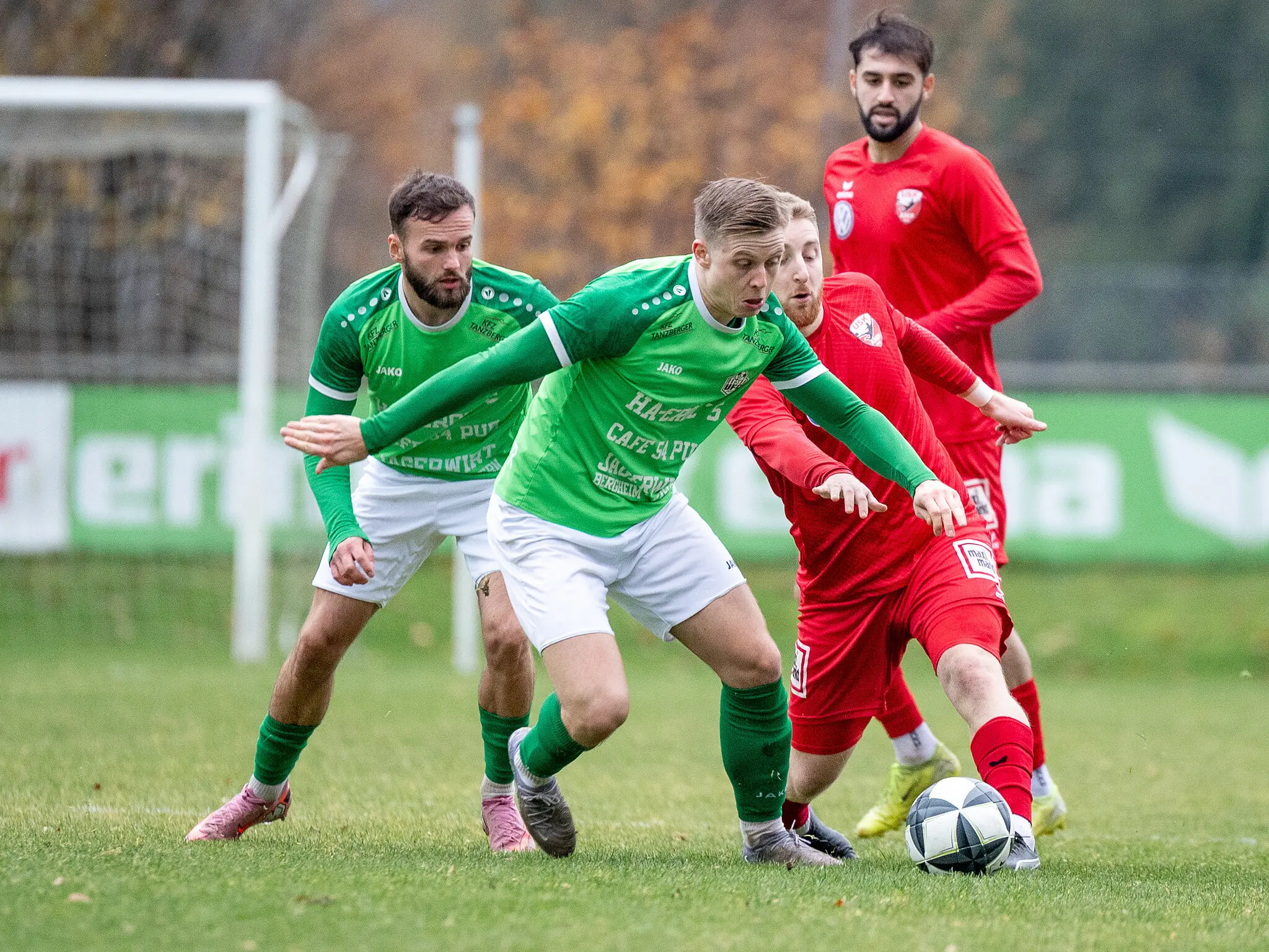 Hallein (grün) krönte sich mit dem 3:1-Auswärtserfolg gegen Anif zum Herbstmeister der Salzburger Liga.