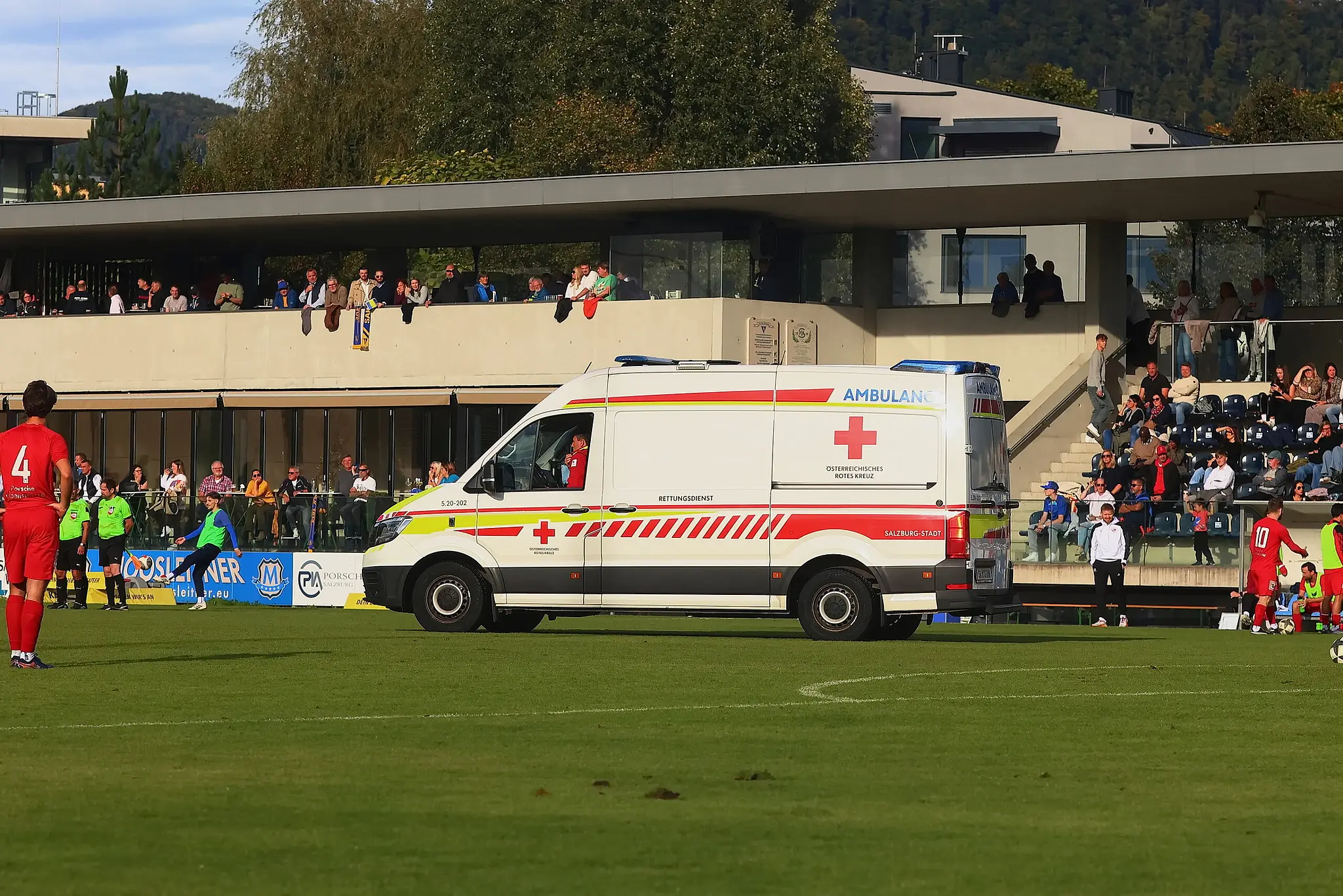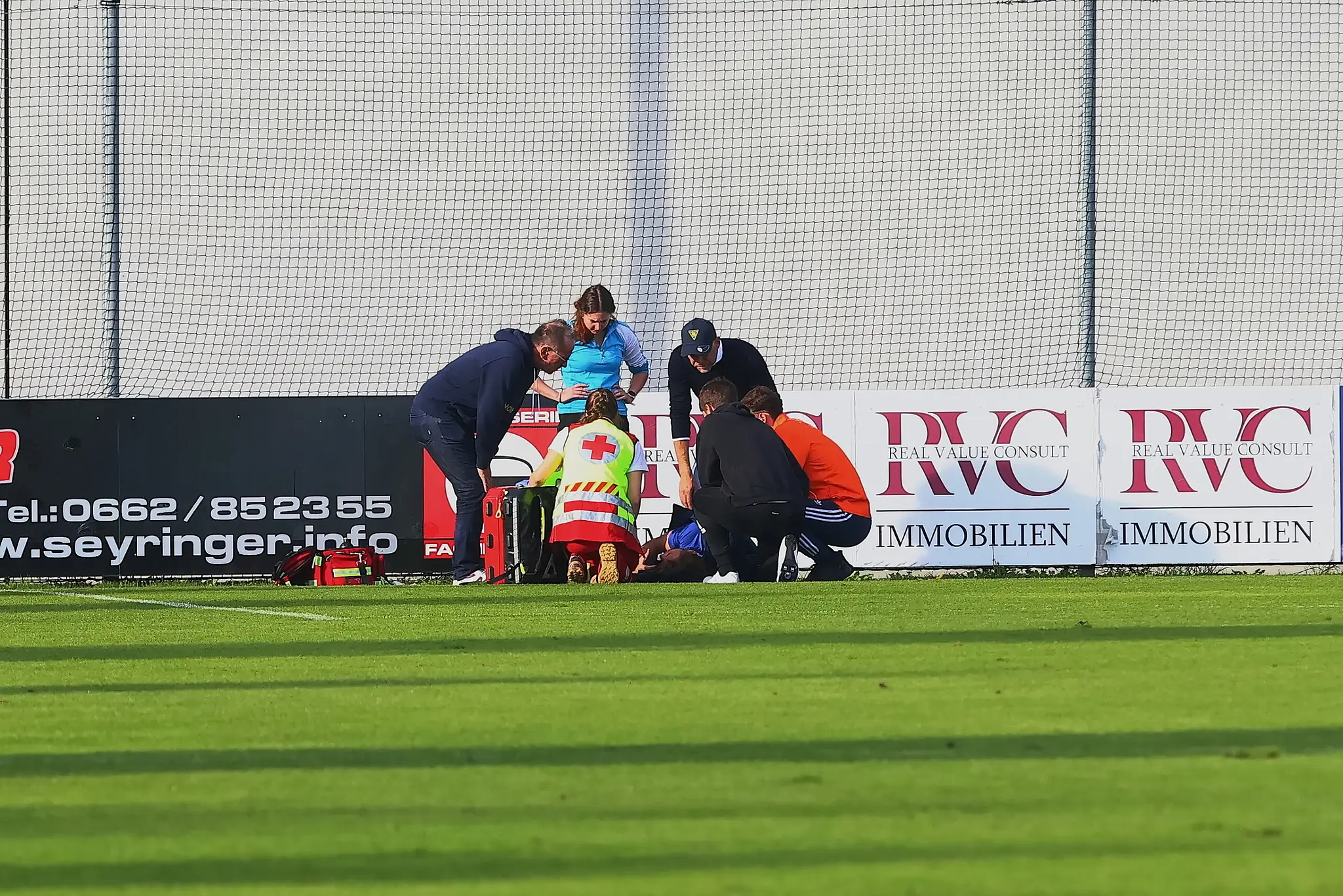 In der 18. Minute stürzte der SAK-Spieler nach einem Zweikampf ungebremst mit dem Gesicht gegen eine Werbebande. Die Partie musste rund 30 Minuten unterbrochen werden, um medizinische Hilfe zu leisten. Hartl erlitt laut Trainer Florian Königseder mehrere Brüche im Gesicht, drei beschädigte Zähne und zog sich auch einen Bruch an der Hand zu. „Er ist stabil, aber es sieht leider schlimm aus“, erklärte Königseder gegenüber SALZBURG24.