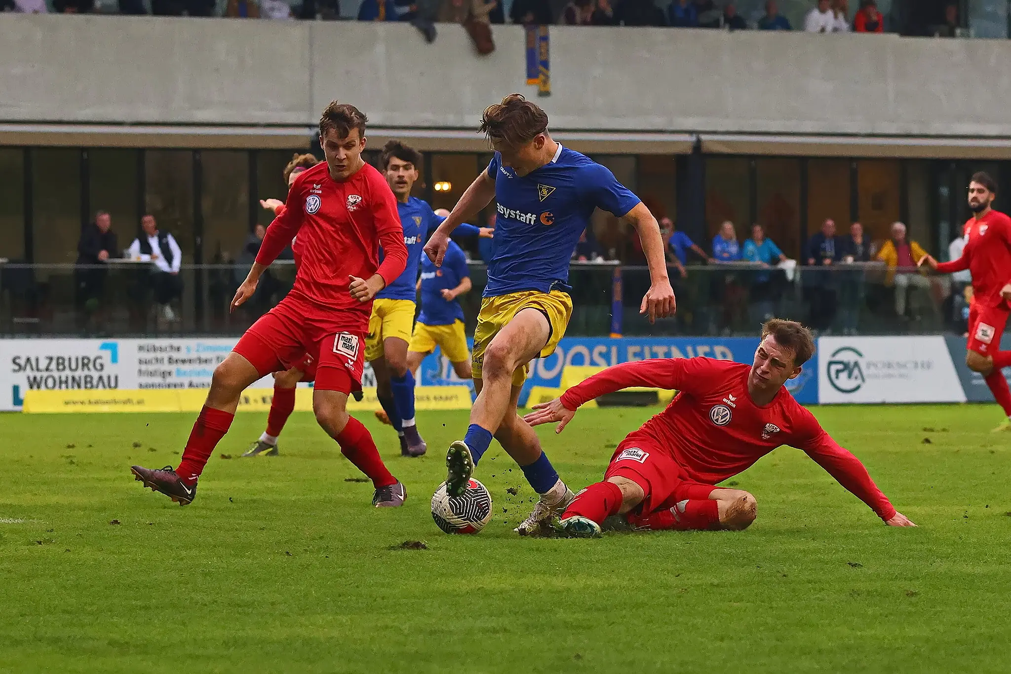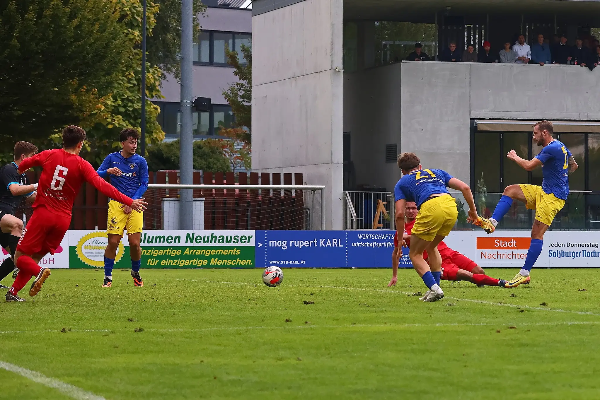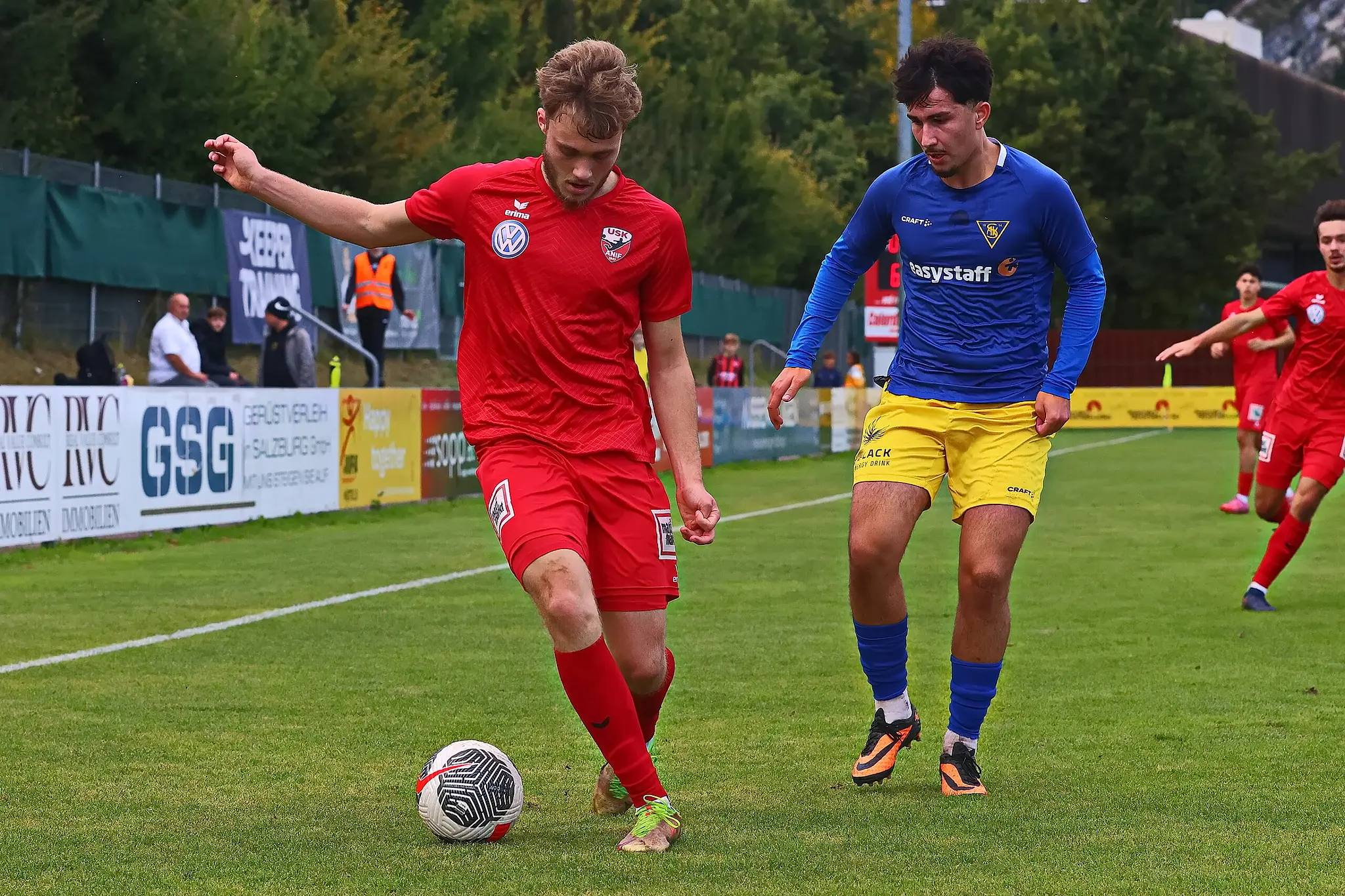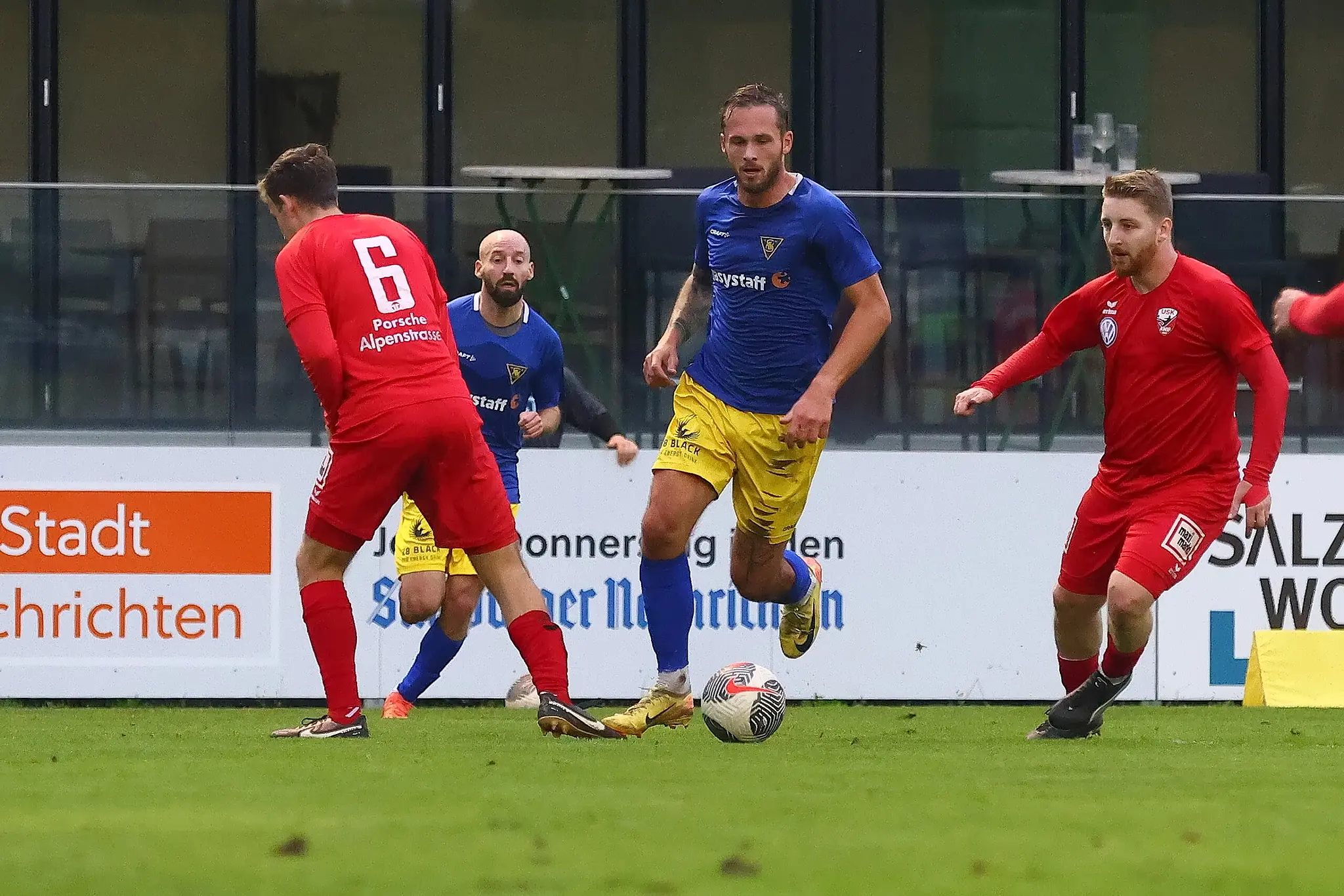 Auch Straßwalchen holte sich drei Punkte auf fremdem Platz. In einem spannenden Spiel in Schwarzach setzte sich die Elf von Bernhard Huber Rieder mit 3:2 durch. Christoph Gassner brachte die Gastgeber in Führung, doch Lucas Wildmann und David Schörghofer drehten das Spiel für Straßwalchen. David Granegger glich zwischenzeitlich aus, ehe David Kriechbaum für den entscheidenden Treffer sorgte. Straßwalchen springt mit dem Sieg auf Rang sieben, Schwarzach fällt auf Platz zehn zurück.