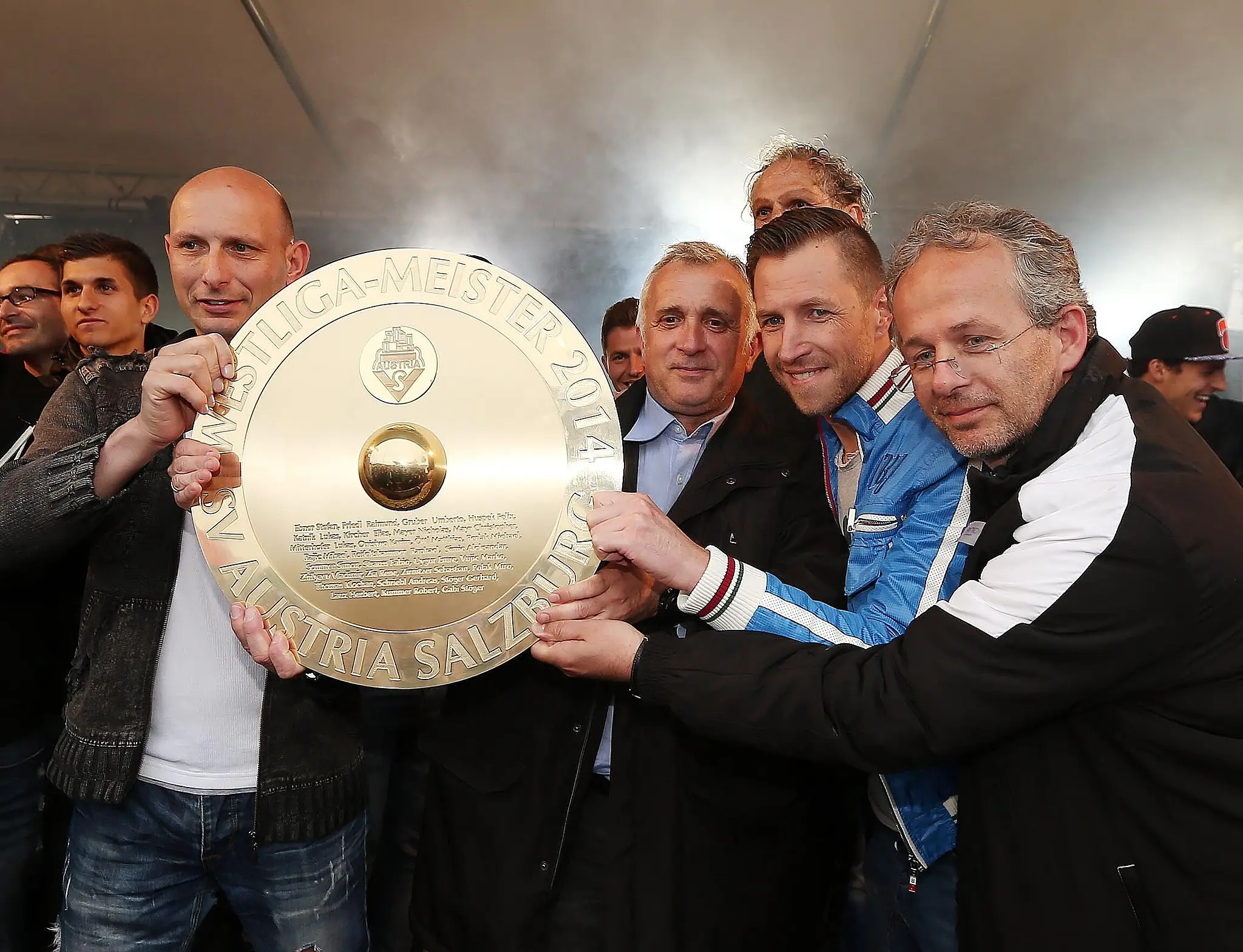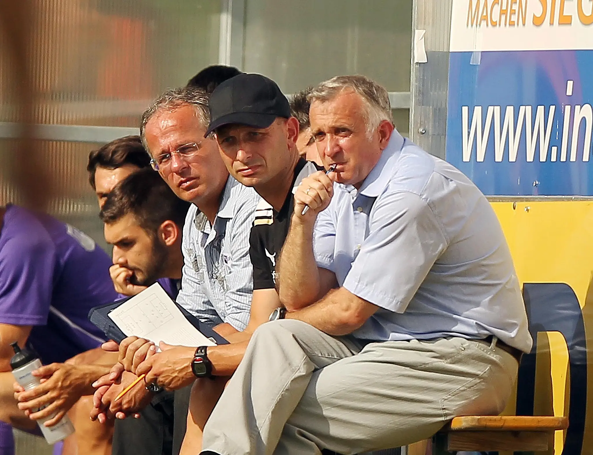 Thomas Klochan (re./neben Gerhard Stöger) war im Salzburger Fußball-Unterhaus bei Austria Salzburg, Henndorf und Grödig als Tormann- bzw. Co-Trainer tätig.