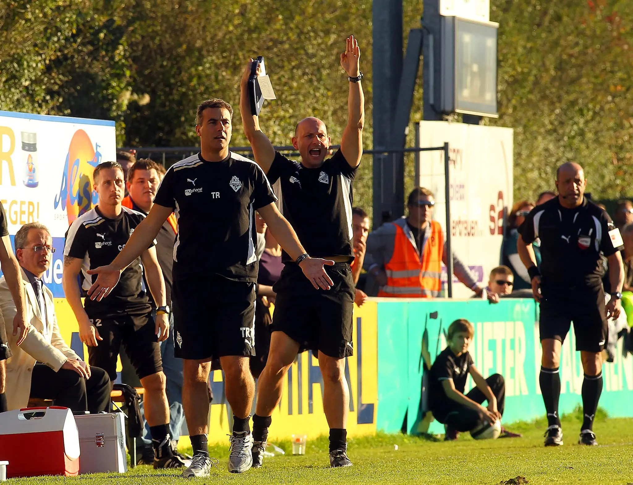 Thomas Klochan (re./neben Thomas Hofer) war im Salzburger Fußball-Unterhaus bei Austria Salzburg, Henndorf und Grödig als Tormann- bzw. Co-Trainer tätig.