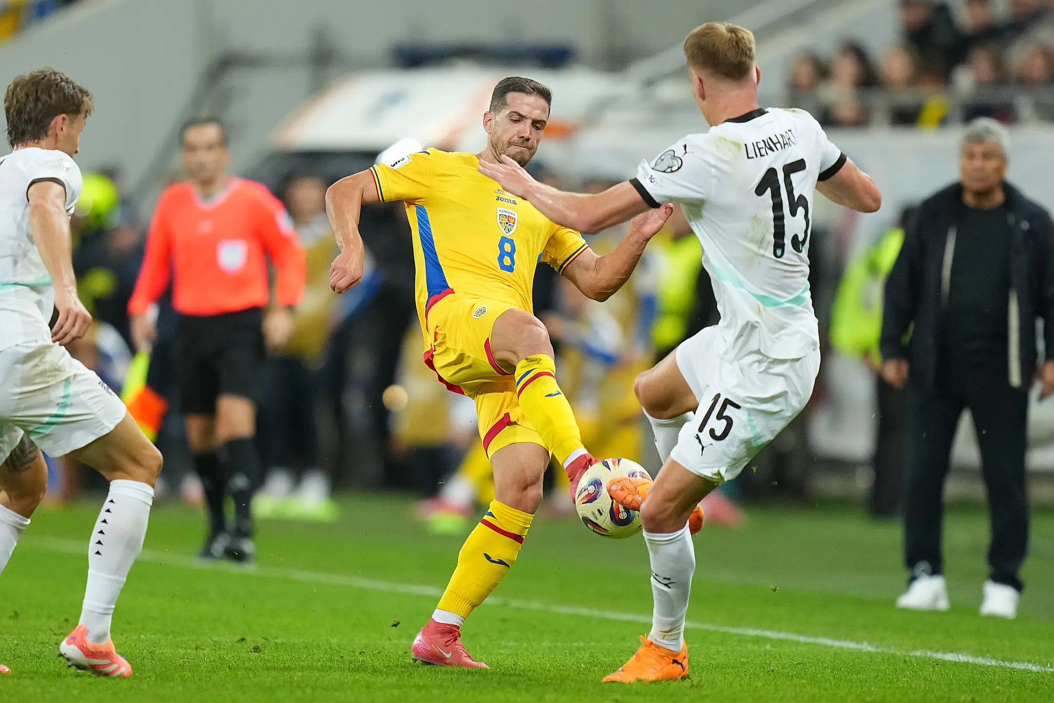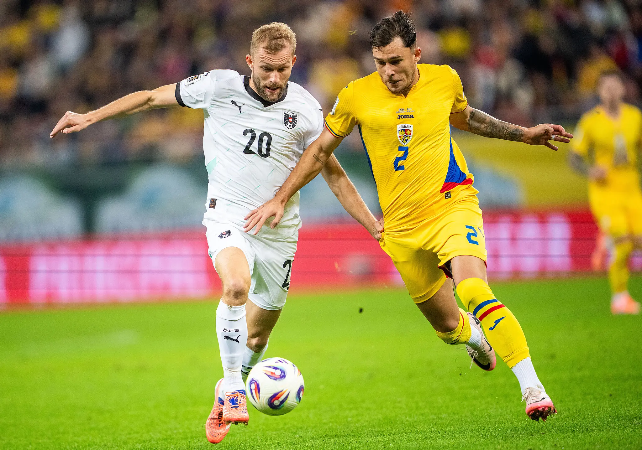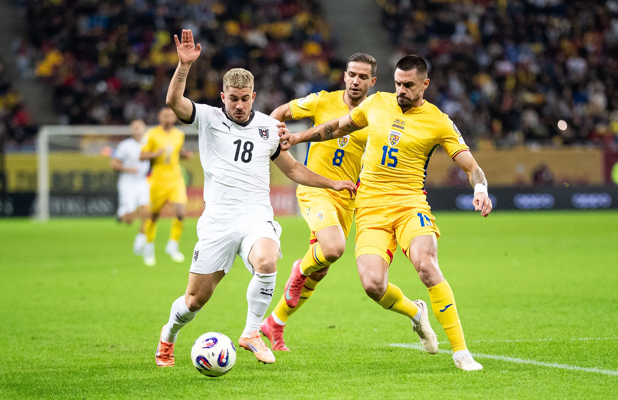 Unter den 39.581 Zuschauerinnen und Zuschauern in der bei weitem nicht vollen Arena Nationala waren mehr als 1.000 ÖFB-Fans und Österreichs Außenministerin Beate Meinl-Reisinger. Sie sahen eine kampfbetonte Partie, in der die Österreicher vor der Pause zwar etwas mehr Ballbesitz, die Rumänen aber die gefährlicheren Szenen hatten. Valentin Mihaila setzte einen Seitfallzieher ebenso links neben das Tor (7.) wie Andrei Ratiu einen Distanzschuss (15.).