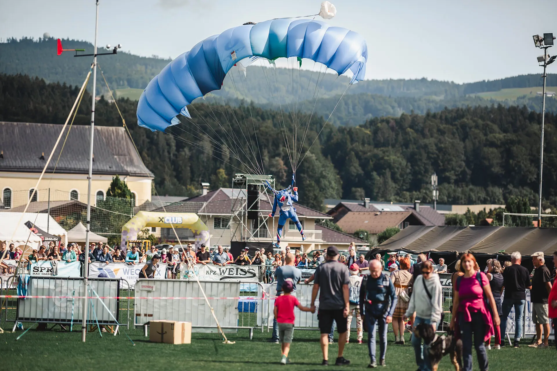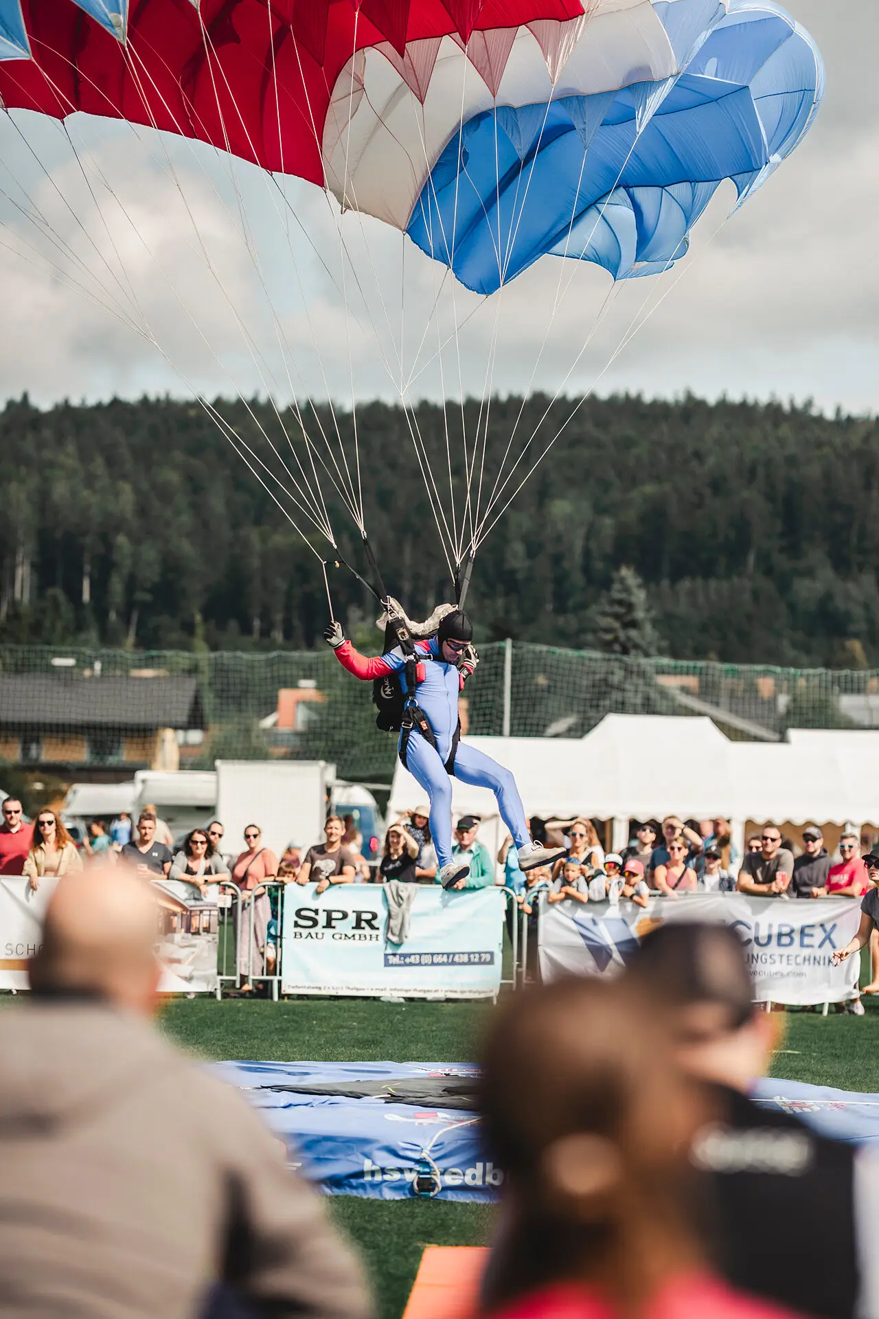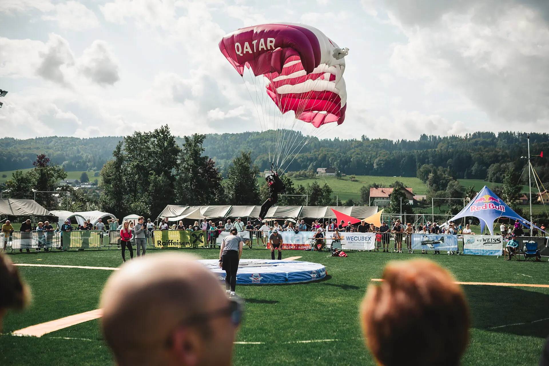 Die internationale Elite der Fallschirmspringer hat am Wochenende beim Weltcup im Zielspringen in Thalgau (Flachgau) ihr Können gezeigt. Ziel war es, aus 1.000 Metern Höhe exakt auf einer Fläche so groß wie eine Zwei-Euro-Münze zu landen. Unser Fotograf Marco war vor Ort und hat die besten Momente für euch festgehalten.