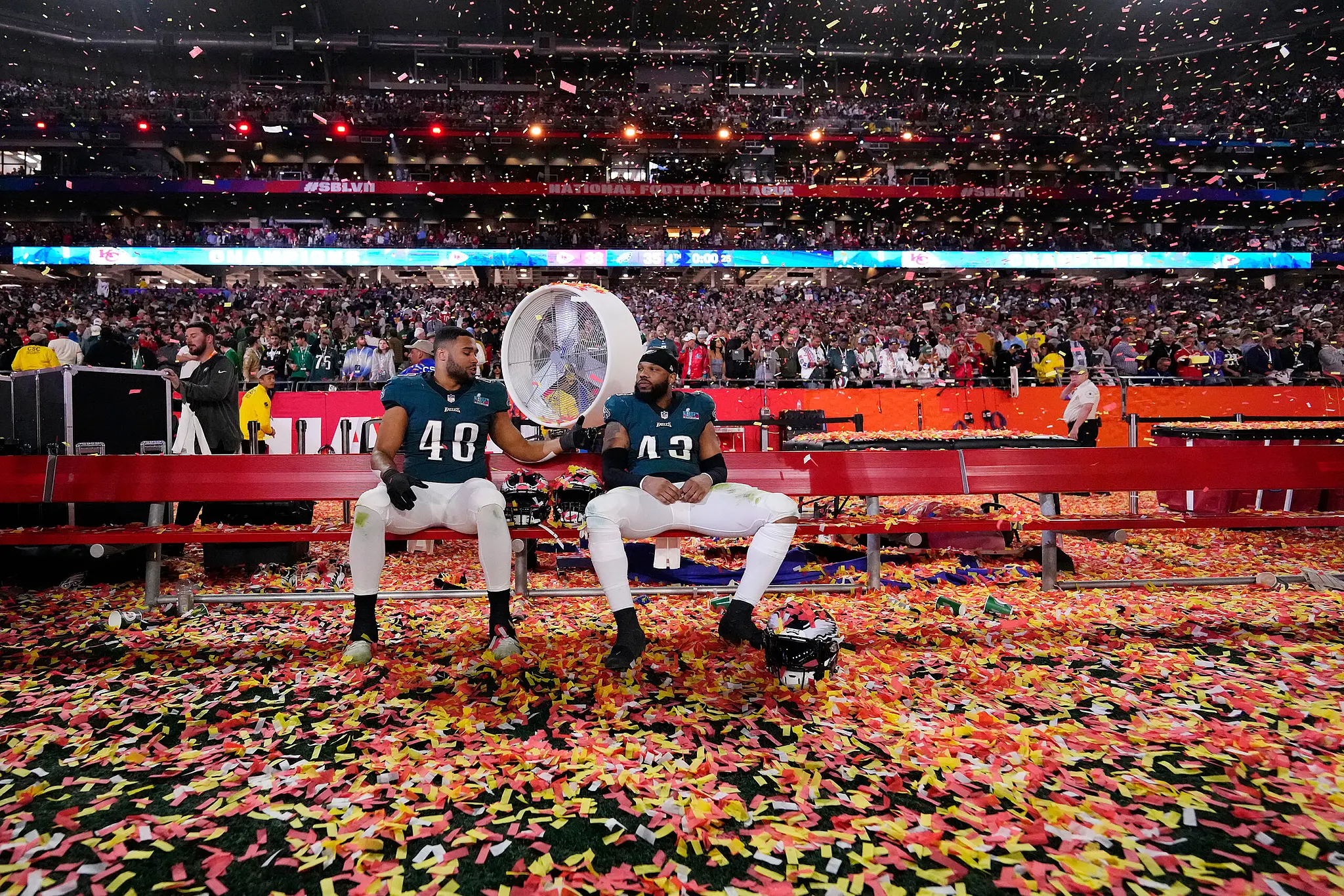 Ebenfalls nie zuvor gab es ein Brüder-Duell: Travis Kelce von den Chiefs und Jason Kelce von den Eagles änderten das in Arizona. Mit nun zwei Siegen im wichtigsten Football-Spiel der Welt hat Travis Kelce, der jüngere der beiden Brüder nun die "ultimativen Angeber-Rechte", wie sein älterer Bruder bereits zu Beginn der Woche angekündigt hatte. "Ich liebe diesen Jungen, das ist die beste Saison meiner Karriere", sagte Travis Kelce.