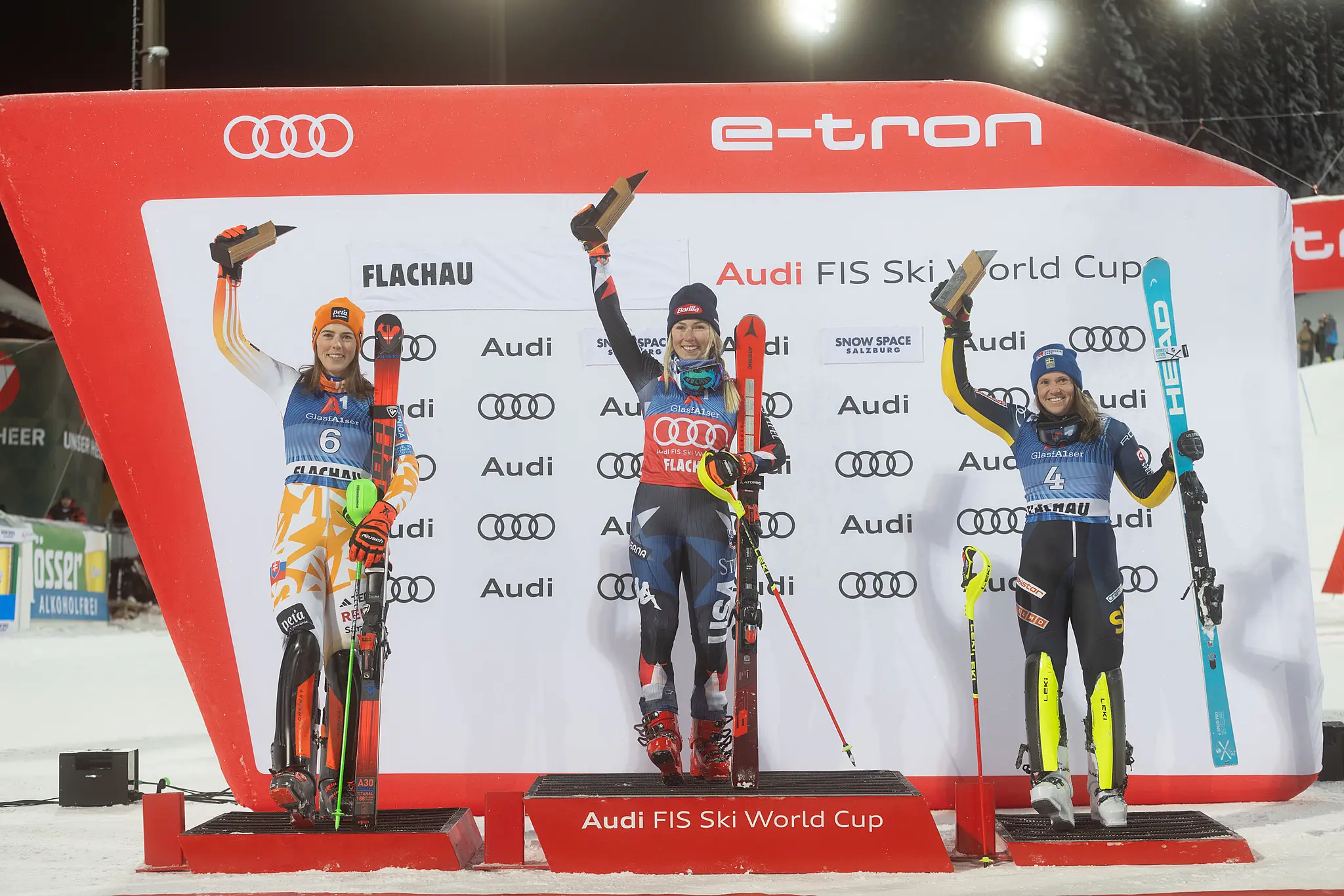 Mikaela Shiffrin hat zum fünften Mal den Weltcup-Nachtslalom der Frauen in Flachau gewonnen. Die Rekordsiegerin setzte sich bei einem der Highlight-Rennen der Saison im Pongau 0,27 Sekunden vor ihrer Dauerrivalin Petra Vlhova durch. Katharina Liensberger fuhr bei einem ihrer Lieblingsrennen vor 12.800 Zuschauenden als beste Österreicherin auf Rang sieben.
