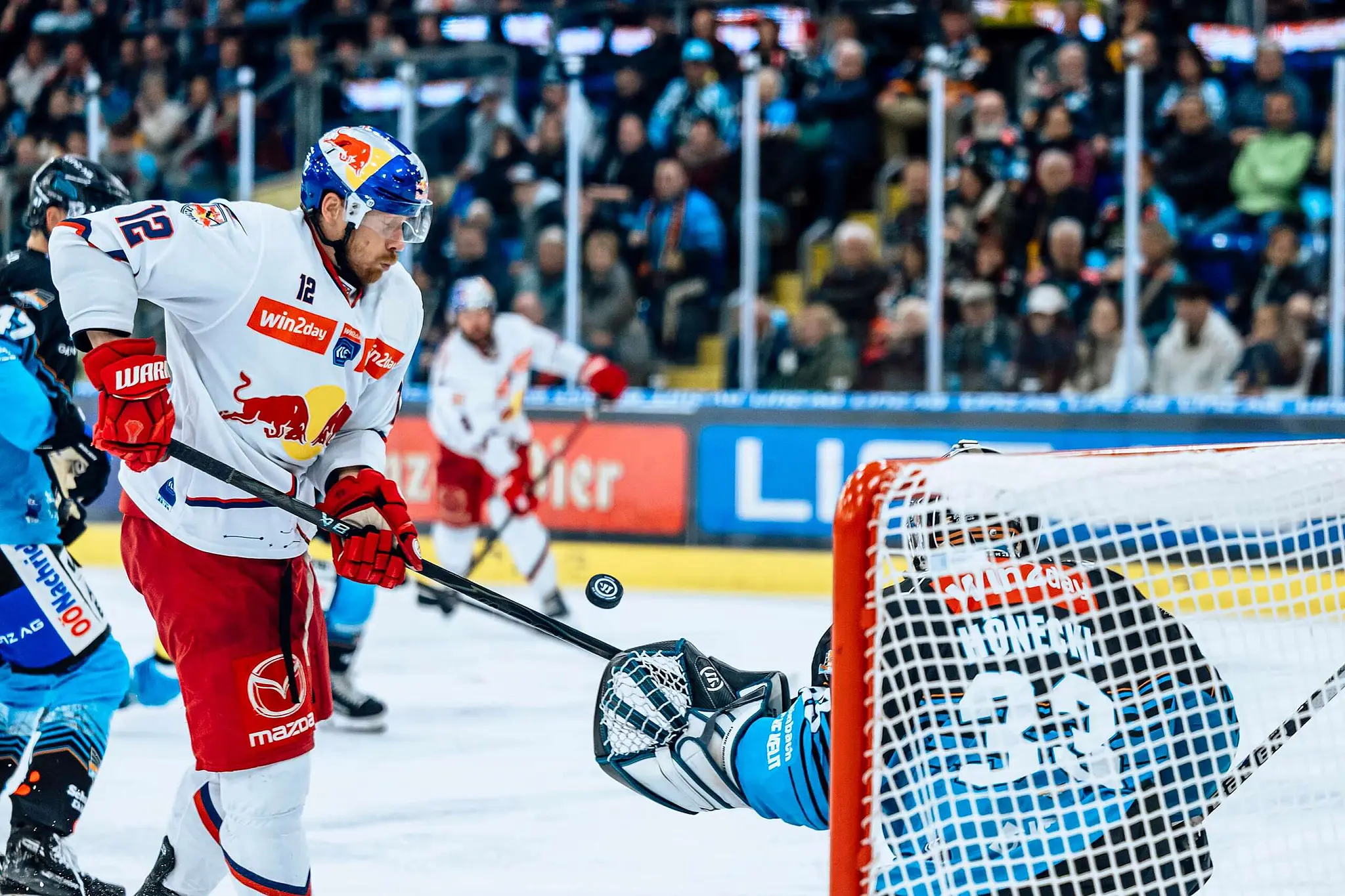 Die Partie von Meister Salzburg in Linz verlief ungeachtet des schlechten Saisonstarts der Linzer mit zuletzt fünf Pleiten in Serie ausgeglichen. Travis St. Denis erzielte nach perfekter Vorarbeit von Michael Raffl kurz vor Ende des ersten Abschnitts das 1:0 für die Gäste. Brian Lebler glich fünf Minuten nach Wiederbeginn aus. Im Schlussdrittel gelang Verteidiger Logan Roe (46.) die Führung für Linz, die aber nicht lange hielt. Benjamin Nissner (50.) stellte auf 2:2. In der Schlussphase waren die Black Wings mehrmals knapp dran am dritten Treffer, dieser glückte Travis Barron letztlich erst in der fünften Minute der Verlängerung.