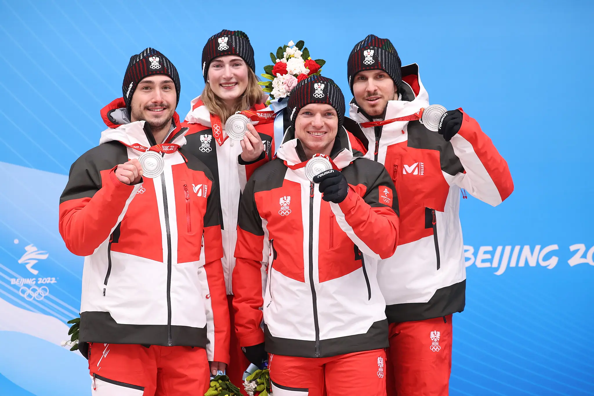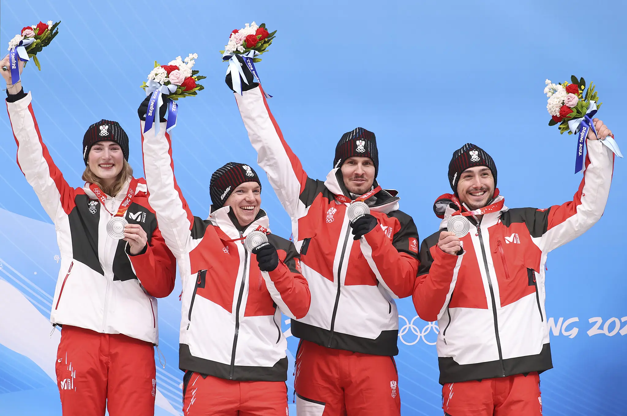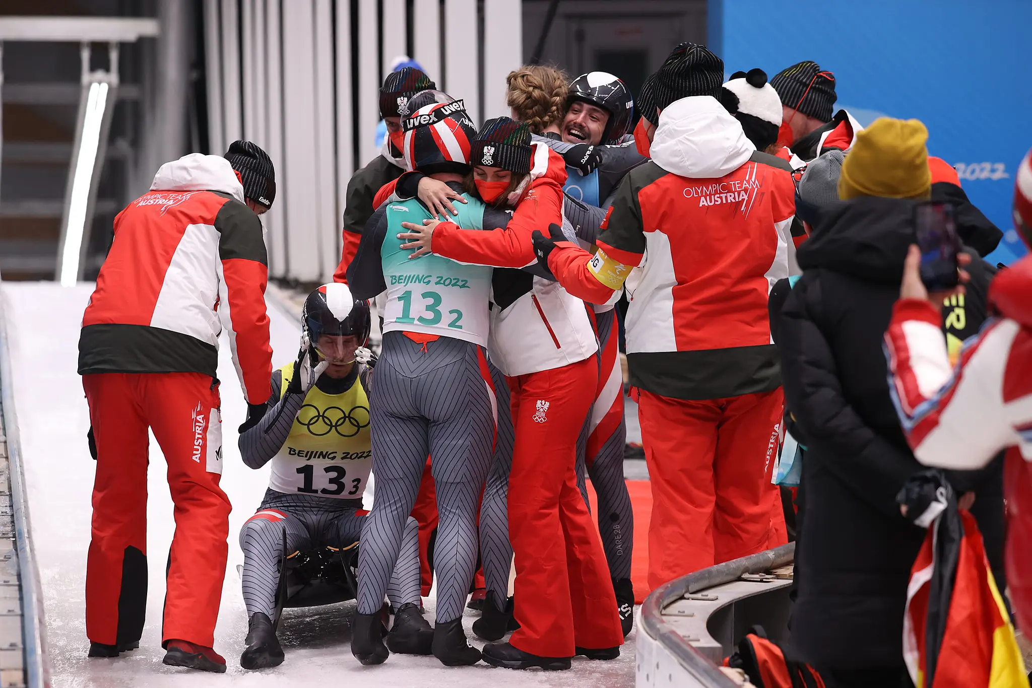 Madeleine Egle, Wolfgang Kindl und Thomas Steu/Lorenz Koller mussten sich im Eiskanal von Yanqing nur der deutschen Mannschaft mit Natalie Geisenberger, Johannes Ludwig und Tobias Wendl/Tobias Arlt um 0,08 Sekunden geschlagen geben. Bronze ging an Lettland. Österreich hält damit bei diesen Spielen bei vier Gold-, fünf Silber- und vier Bronzemedaillen.