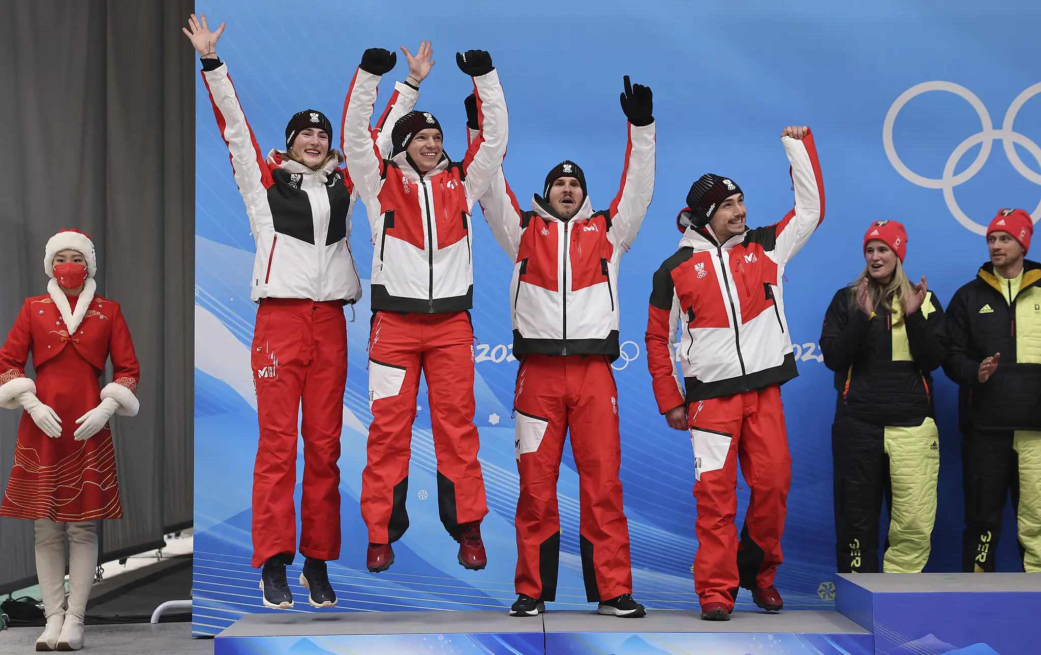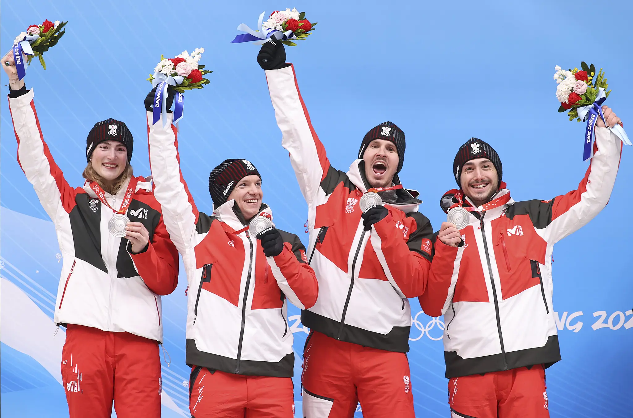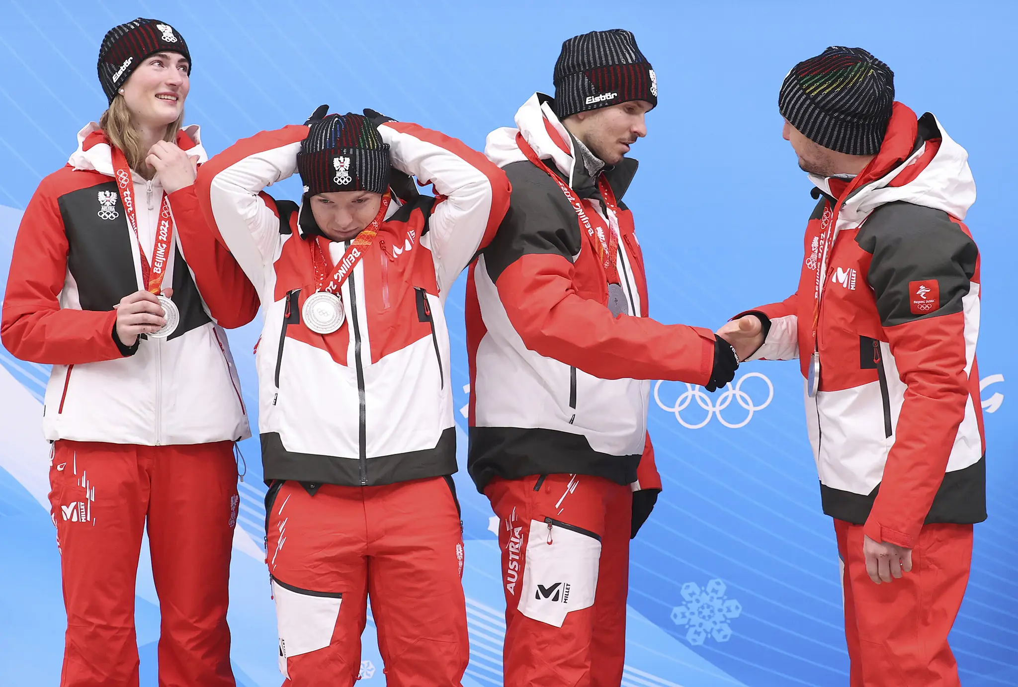 Madeleine Egle, Wolfgang Kindl und Thomas Steu/Lorenz Koller mussten sich im Eiskanal von Yanqing nur der deutschen Mannschaft mit Natalie Geisenberger, Johannes Ludwig und Tobias Wendl/Tobias Arlt um 0,08 Sekunden geschlagen geben. Bronze ging an Lettland. Österreich hält damit bei diesen Spielen bei vier Gold-, fünf Silber- und vier Bronzemedaillen.