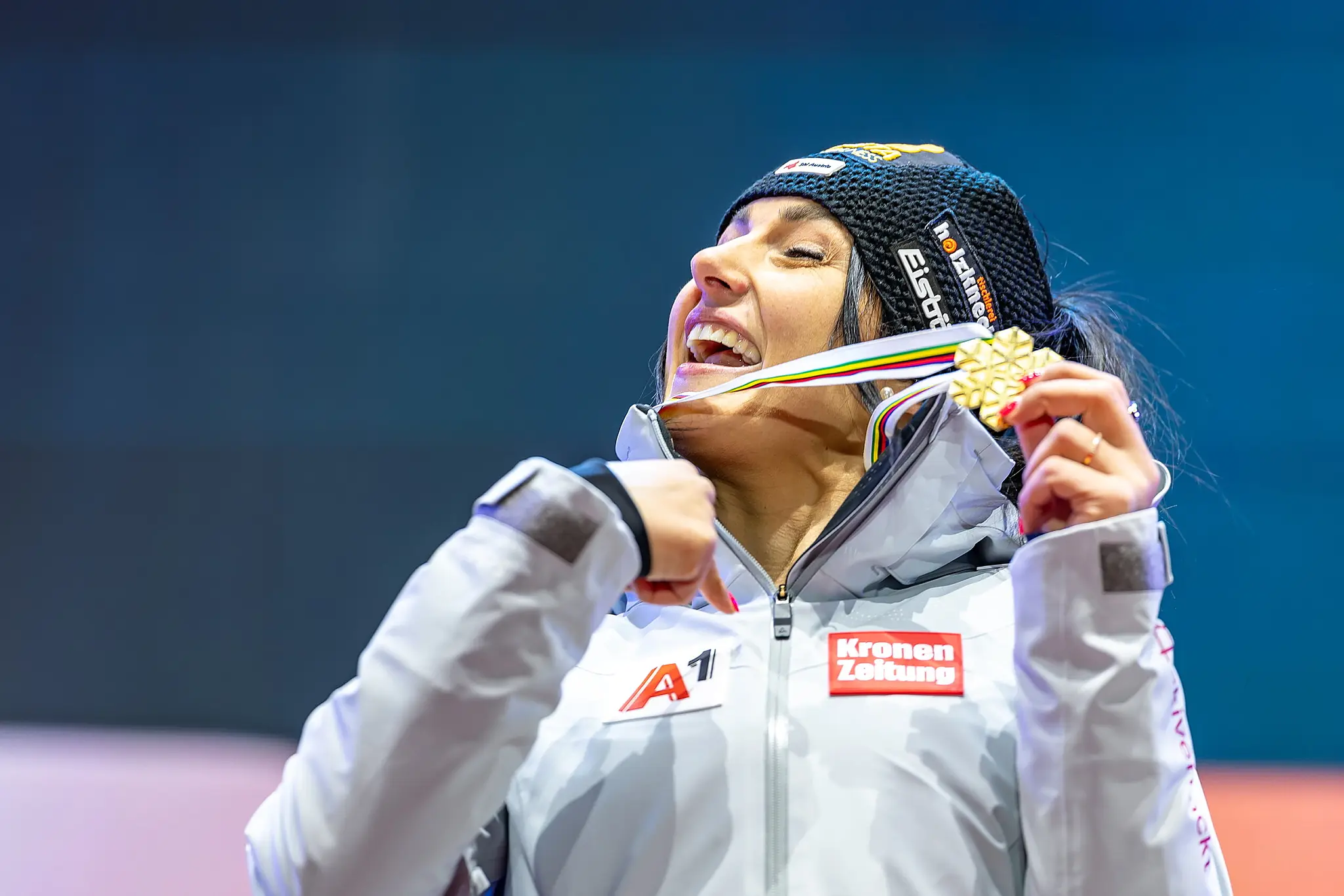 Die erste Goldmedaille bei der Ski-WM in Saalbach-Hinterglemm sackte sich am Mittwoch Stephanie Venier ein. Dabei war die Tirolerin am Vorabend nervös wie nie zuvor. Ein Nickerchen vor dem Rennen ebnete jedoch den Weg zur Goldmedaille, wie sie bei der WM-Party im Glemmtal verriet.
