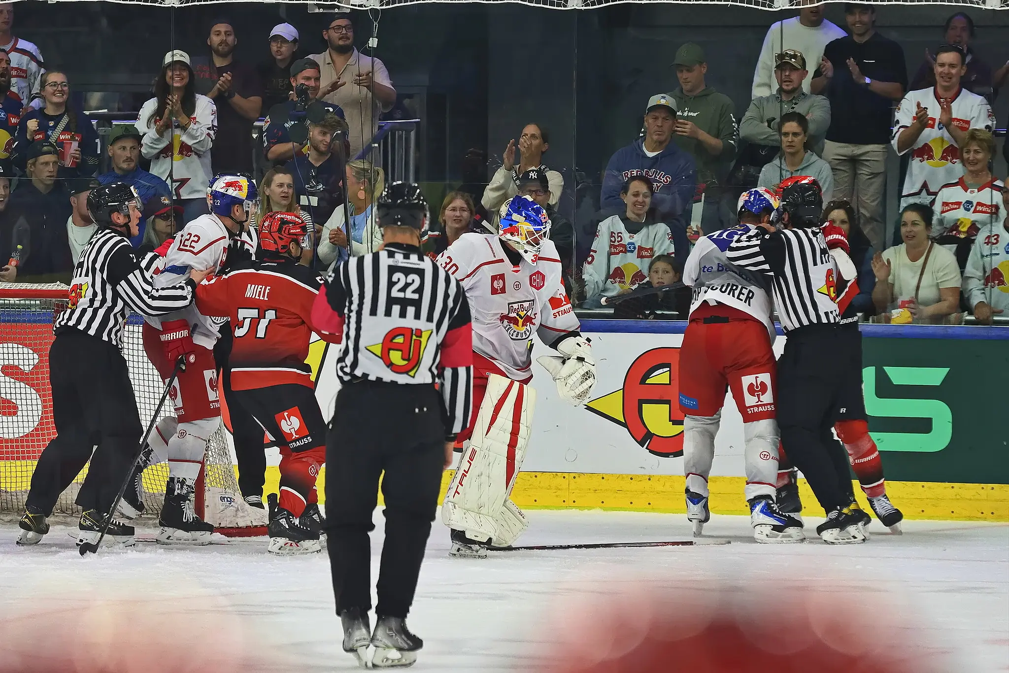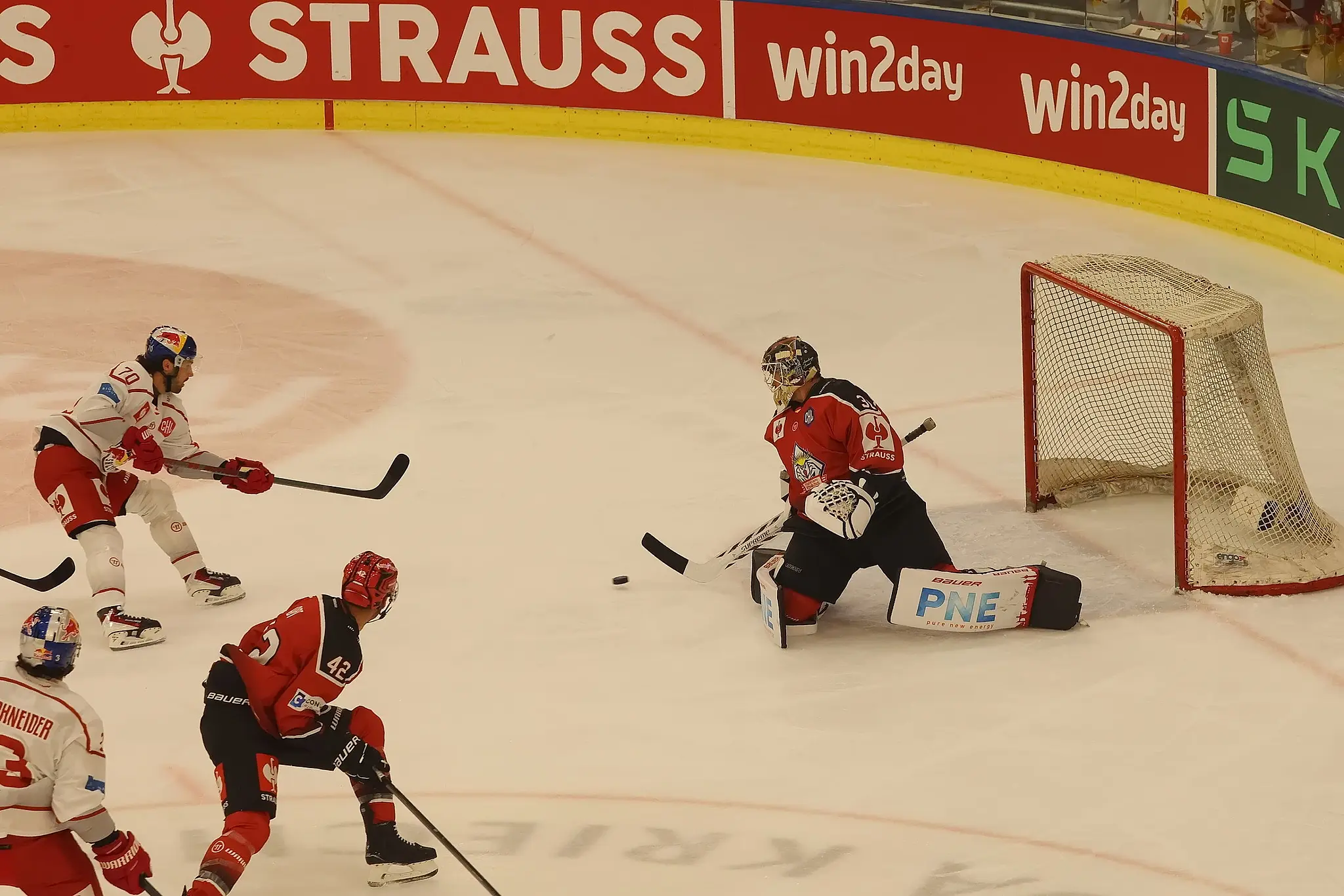 Im Schlussdrittel schlug Lucas Thaler (49.) im ersten eigenen Powerplay der Begegnung zu, vier Minuten später vergab Travis St. Denis einen Penalty und damit die Vorentscheidung. In einer spannenden Schlussphase verteidigten die Eis-Bullen erneut in Unterzahl die Führung und brachten den Vorsprung über die Zeit.